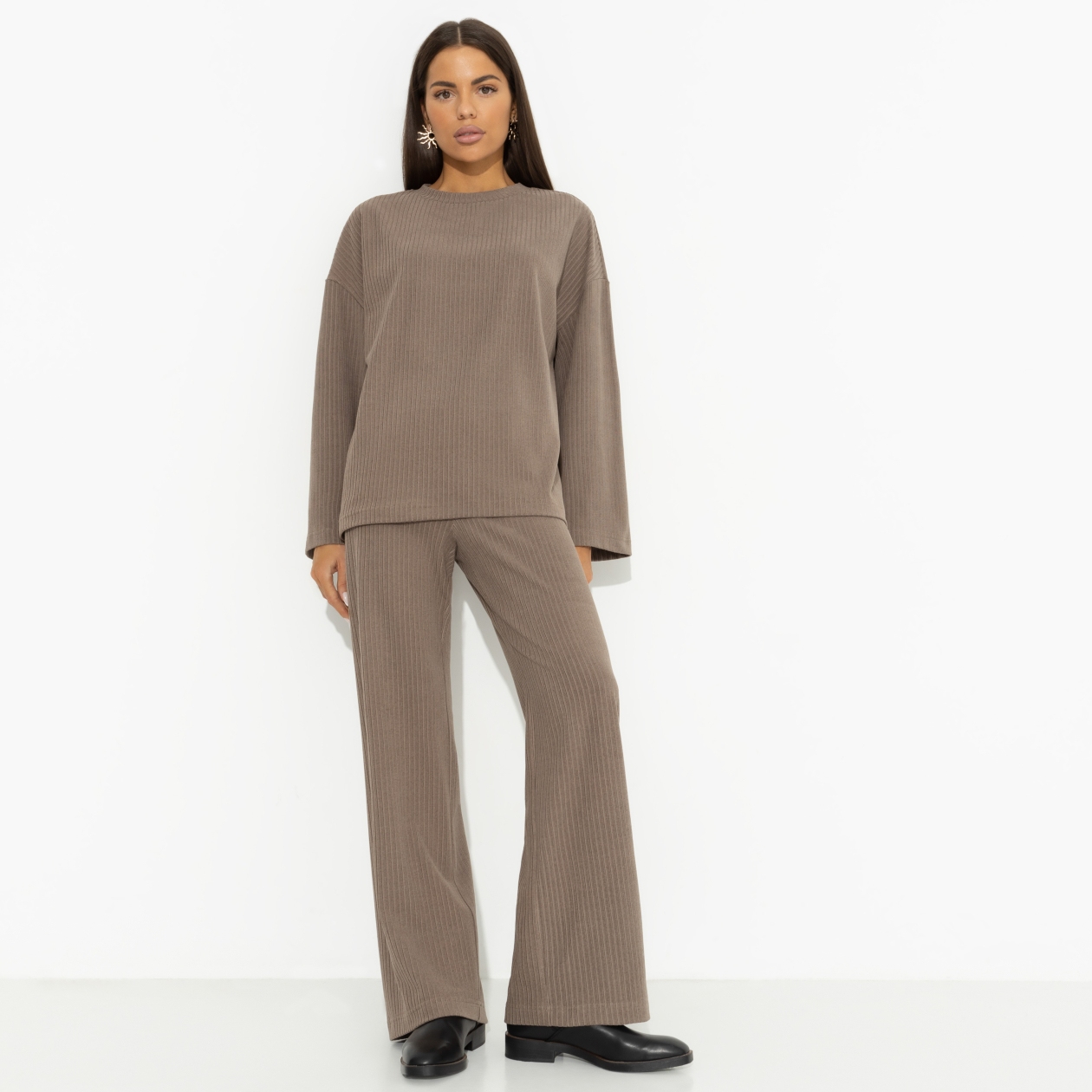 В поисках нежности. Ты искала её в объятиях любимого, в детских ладошках или в прогулке по мягкой траве и в летних рассветах, а нашла… в брюках CHARUTTI. Брюки прямого кроя. Пояс на широкой скрытой резинке. Изделие хорошо смотрится на любом типе фигуры. Посадка средняя. Материал изделия бархатистый, в рубчик.
