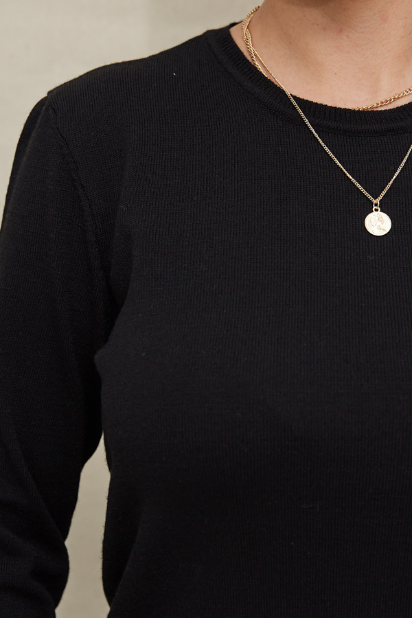 Джемпер полуприлегающего силуэта с длинным втачным рукавом. Низ изделия, низ рукава и круглый вырез горловины оформлены резинкой. Изделие выполнено из мягкой структурированной пряжи.