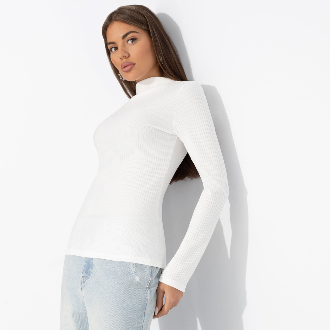 Этот белоснежный лонгслив создан, чтобы приковывать внимание к твоим женственным изгибам. Чистота цвета, мягкость ткани, волнение в каждой линии. Эффект мгновенный и запоминается навсегда. Лонгслив облегающего силуэта. Материал изделия в рубчик. Изделие хорошо смотрится в заправленном виде и навыпуск.