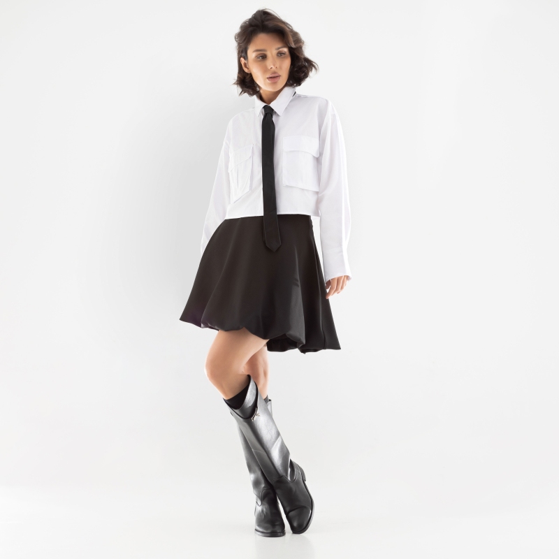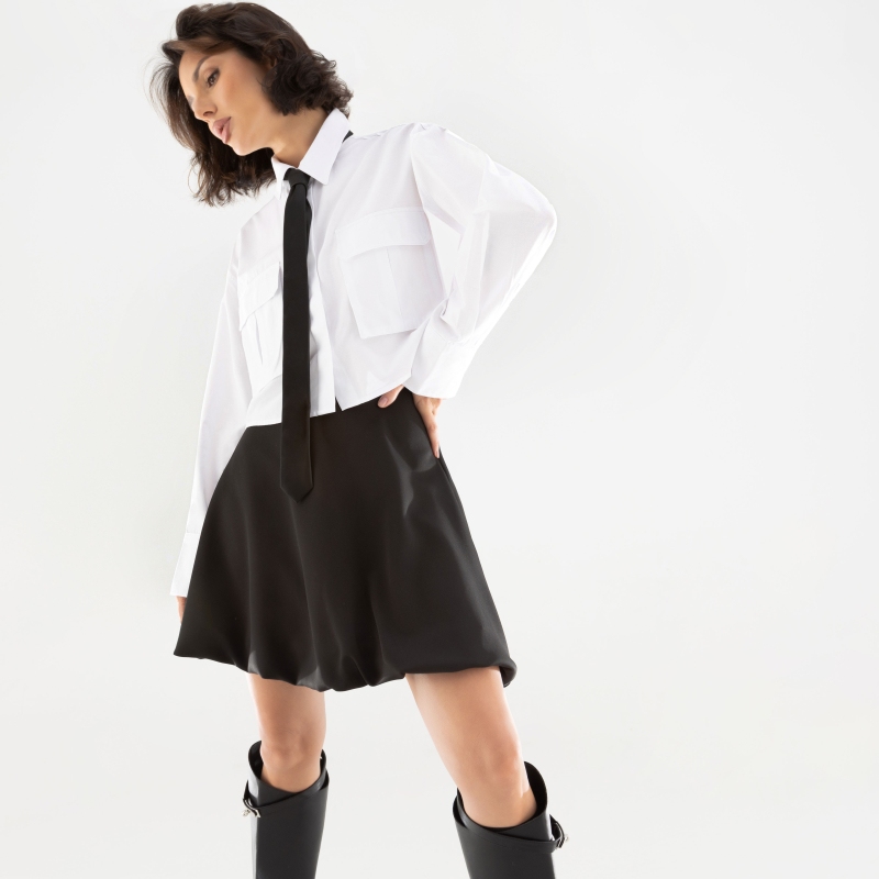 Лучше поздно, чем никогда. Если у вас до сих пор нет классической черной мини-юбки, то это знак для вас. Приобретая одну юбку, вы получаете десятки образов. Эргономичность гардероба – то, к чему стоит стремиться. Юбка-баллон расклешенная. Длина выше колена. Посадка на талии. Застегивается на скрытую молнию.