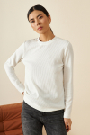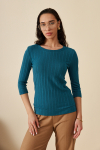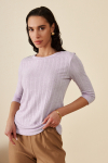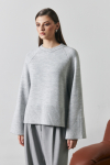 Джемпер полуприлегающего силуэта с рисунком в широкий рубчик. Длинный втачной рукав, V-образный вырез горловины. Низ изделия и низ рукава оформлены резинкой. Изделие выполнено из шелковистой вискозной пряжи.
