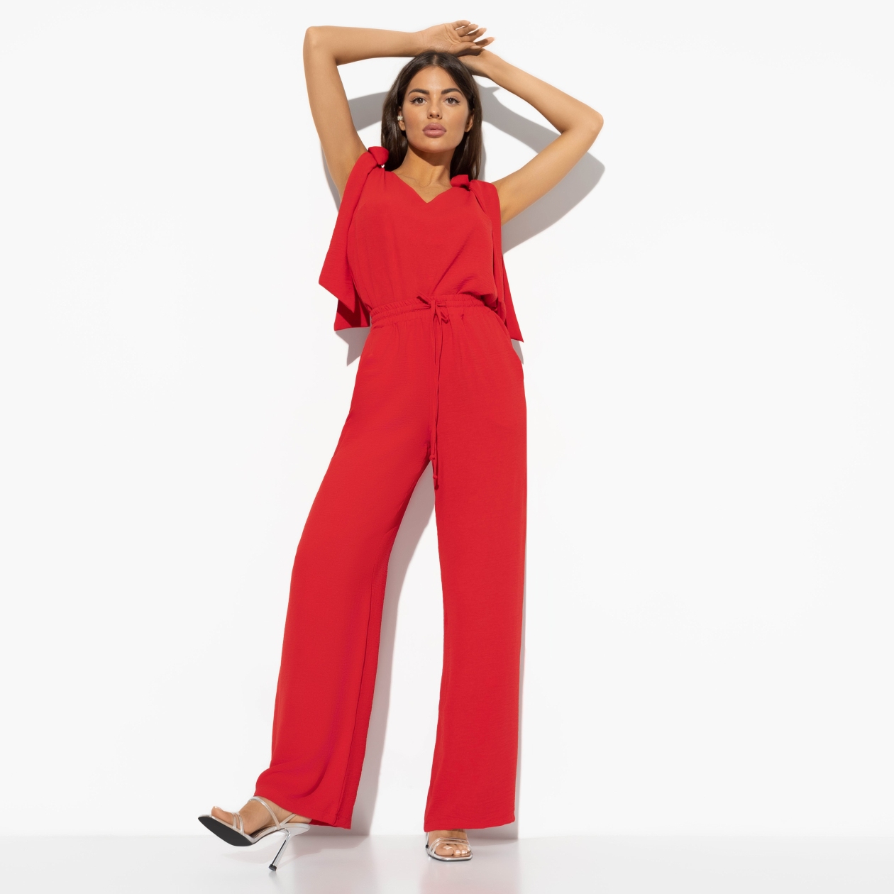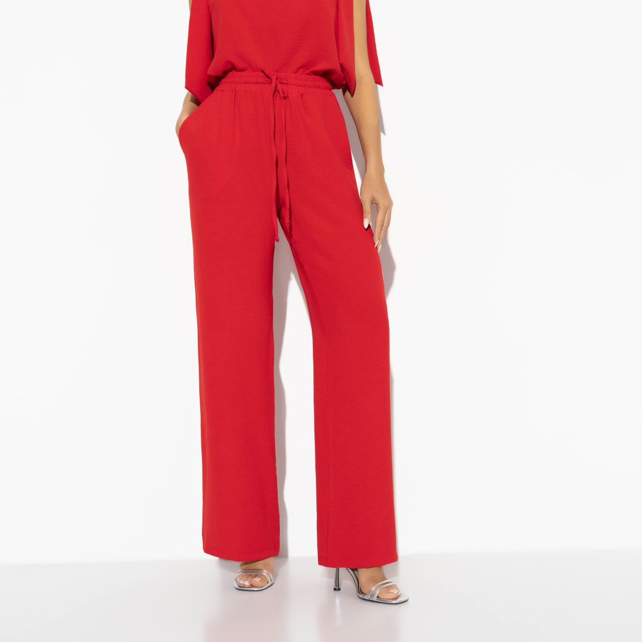 Кадр из замедленной съемки – ты делаешь широкий шаг, оглядываешься и видишь, как мужчина твоей мечты аккуратно падает на асфальт. Такое кино тебе по вкусу. Ты – главная героиня фильма в красных брюках CHARUTTI. Брюки свободного кроя. Завязки на поясе регулируемые. Насыщенный красный цвет. Можно носить с обувью на каблуке и на плоском ходу.