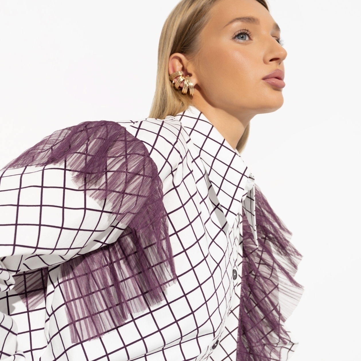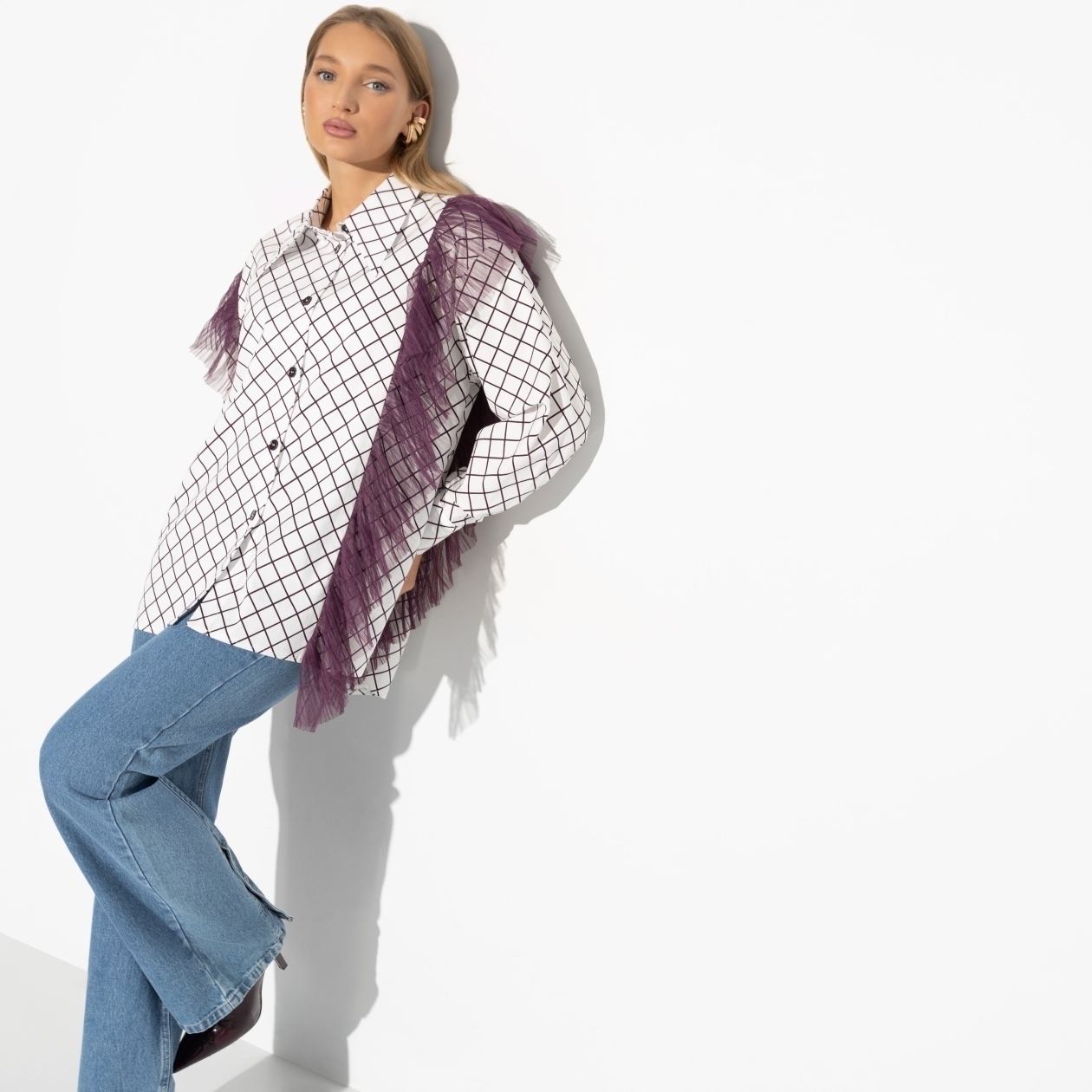 Стать той, которая идеально вписывается в любые обстоятельства. Будь то бранч с подругами или выступление на аудиторию в тысячу человек. Вау-эффект гарантирован в рубашке CHARUTTI в крупную клетку и декором в тон. Рубашка свободного кроя с декором из сетки. Спинка чуть удлинена. Рубашка хорошо смотрится и как самостоятельный предмет гардероба, и как второй слой.