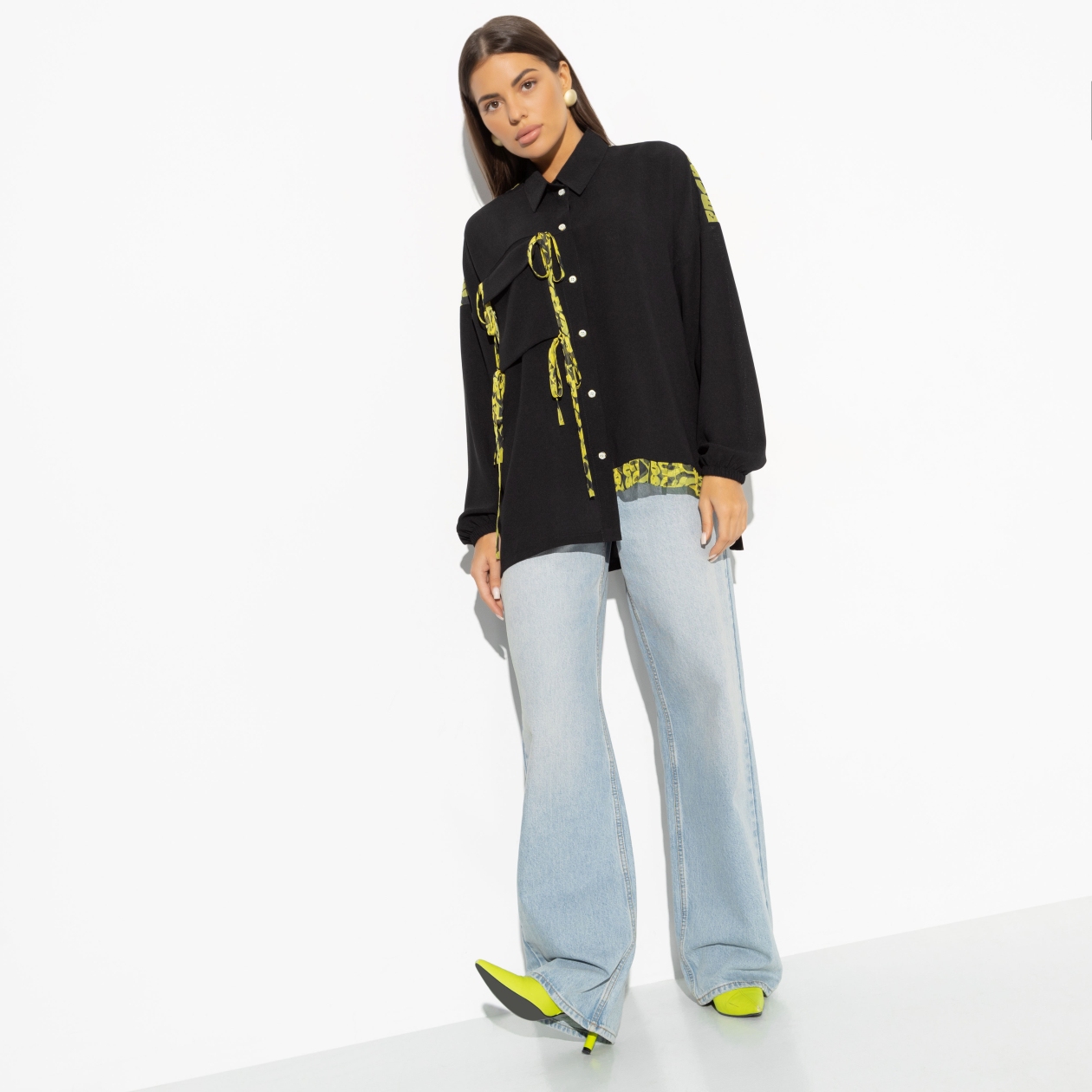 Утром в пятницу ты делаешь зарядку, готовишь себе белковый омлет и кладешь в сумку запасной комплект ключей. У вас с подружками намечается долгожданная встреча. Неизвестно, чем она закончится, но силы тебе точно понадобятся. Рубашка CHARUTTI – идеальный пятничный компаньон. Рубашка свободного ассиметричного кроя. Оформлена декором контрастного цвета. Объемный карман с одной стороны изделия, закреплен на завязках.