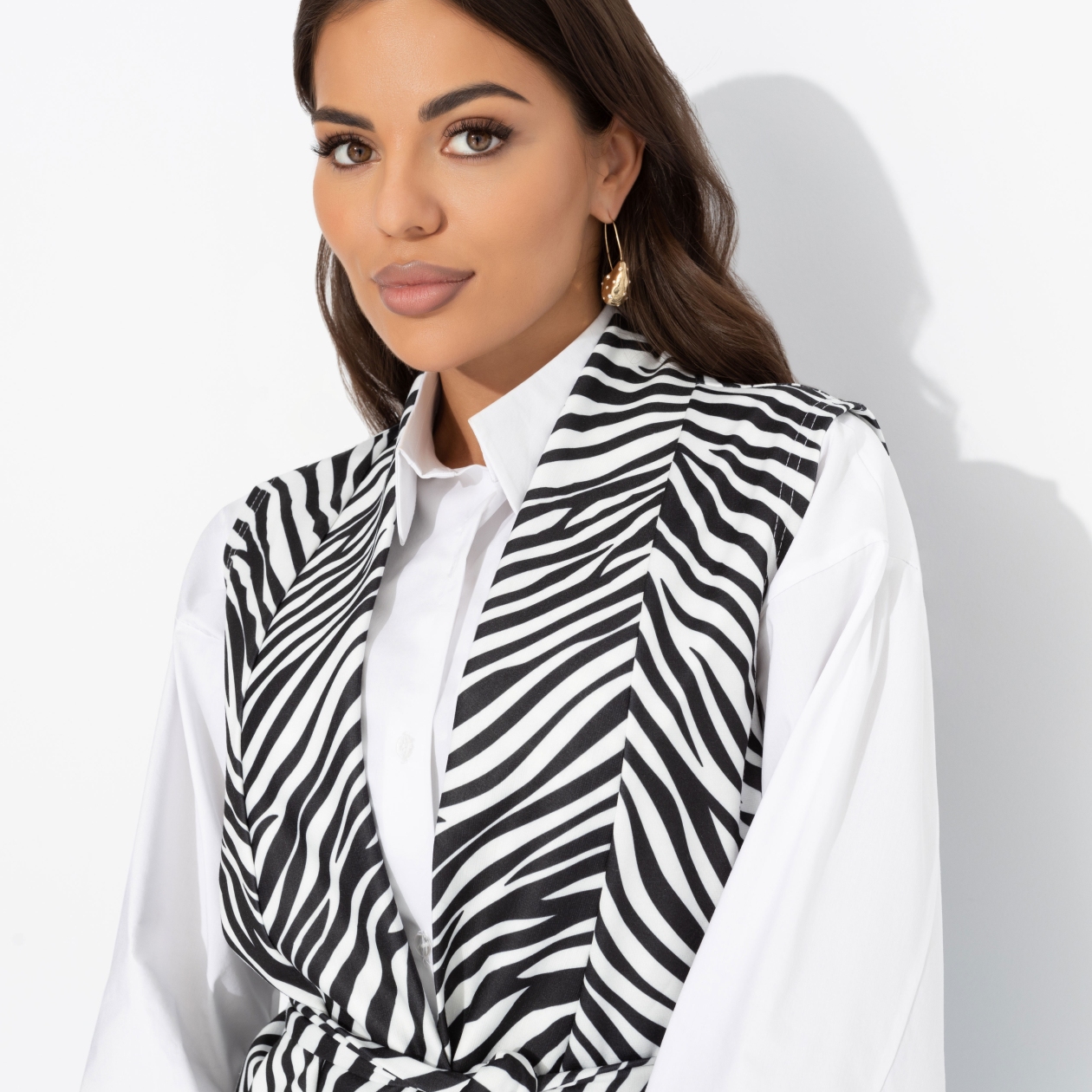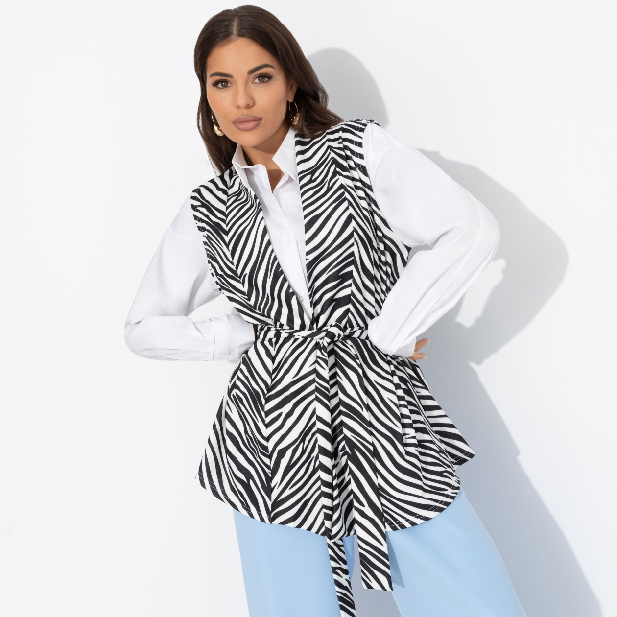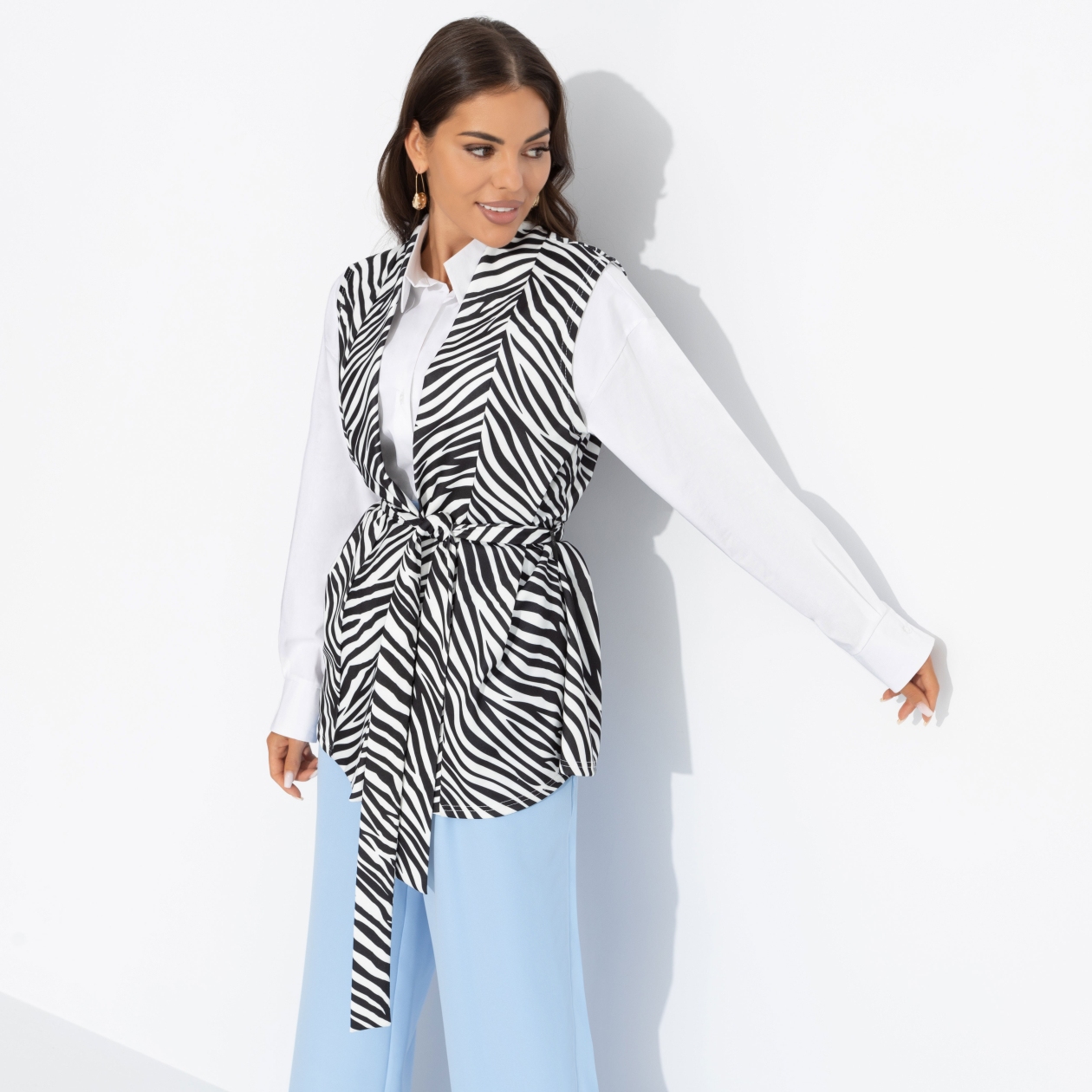 • АртикулЖилет с поясом, Настроена эффектно (монохром)