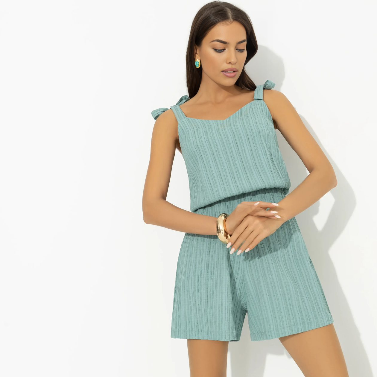 Помнишь, как в детстве мама одевала тебя в комбинезончик? Ты его обожала. Чувствовал себя героиней комикса и главной модницей двора. Возвращайся к ощущению себя звездой в комбинезоне CHARUTTI. Комбинезон с шортами. Изделие на бретелях с завязками. Есть карманы. Линия талии на резинке.