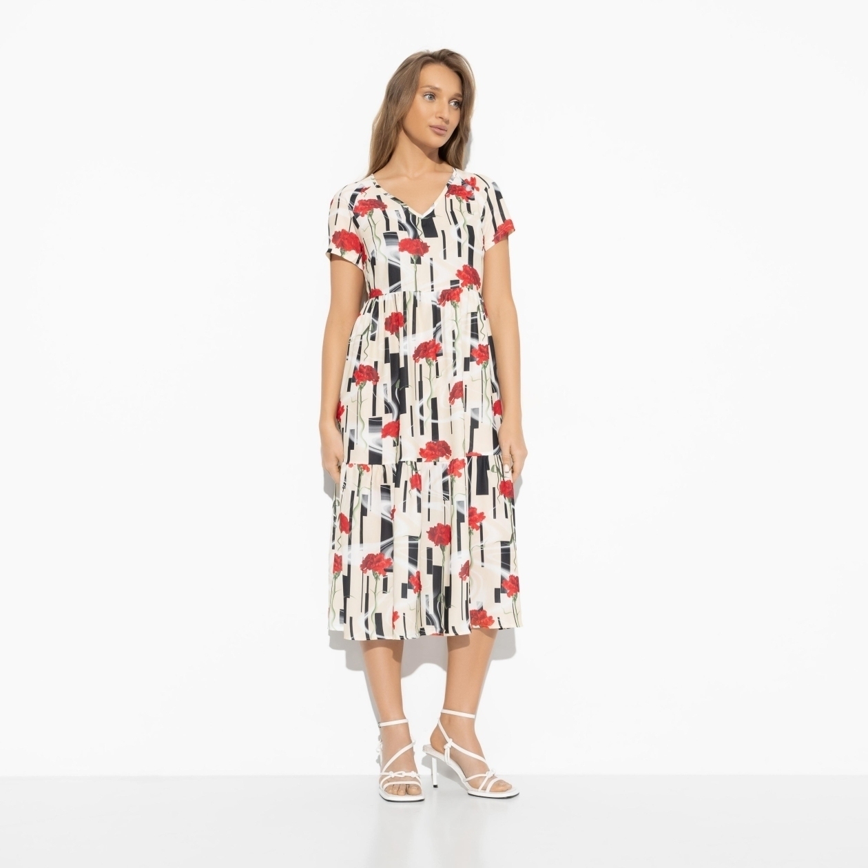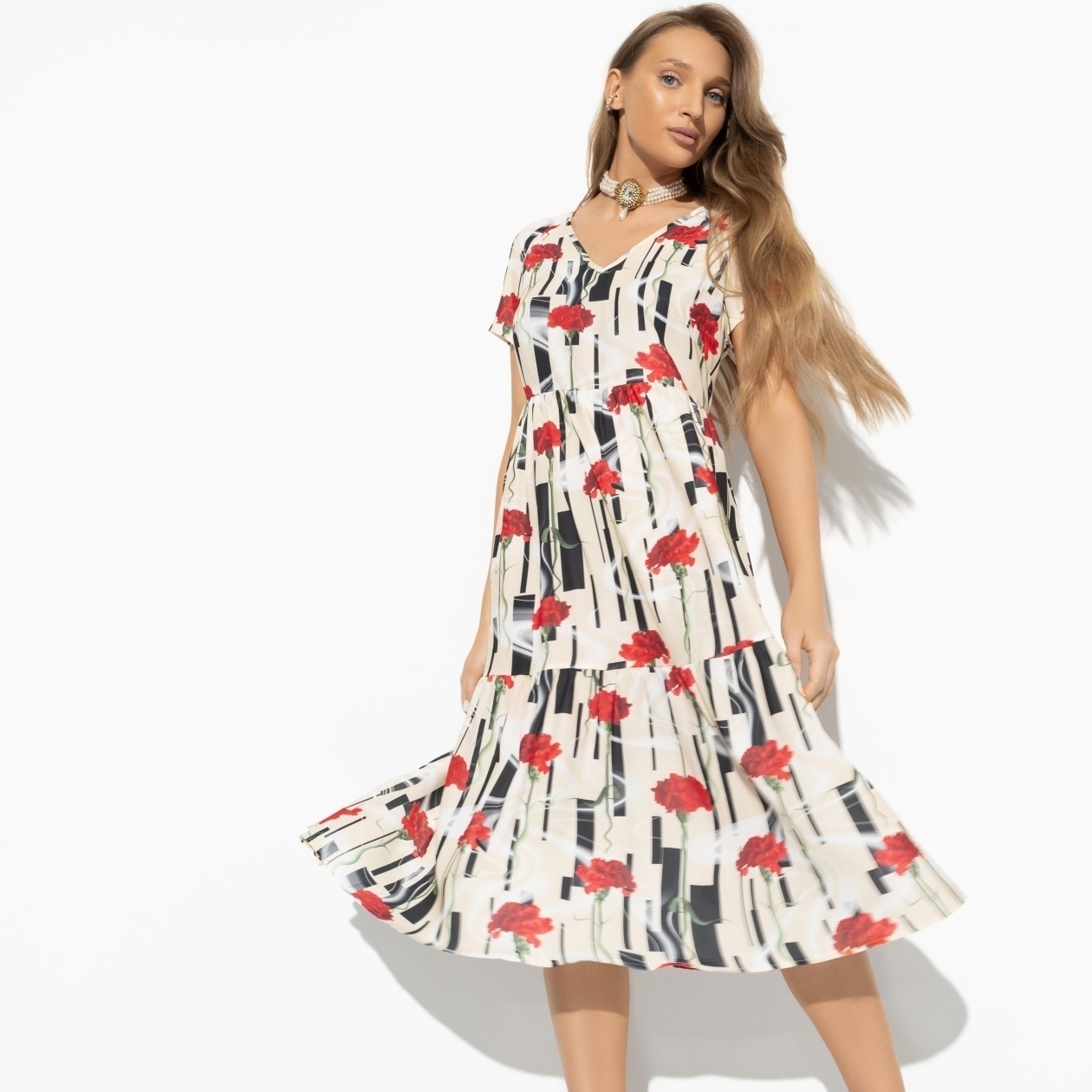 Платье «Воздушная стихия» — это истинное воплощение легкости и элегантности. Красные бутоны, расцветающие на платье, создают атмосферу цветочной феерии, как на показах SAINT LAURENT. Это платье из летящей ткани станет мастхэвом вашего летнего гардероба. Ощутите себя феей, танцующей среди цветов, и создайте неповторимый образ, который очарует всех вокруг.