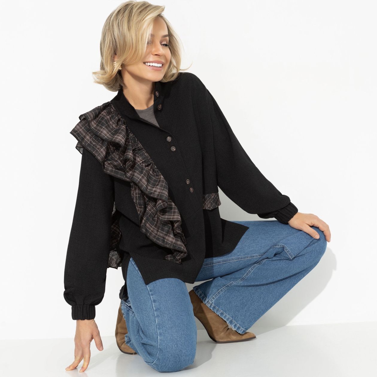 Вдохновляйте стиль и уверенность с дизайнерской рубашкой «Личное достижение (black)». Эта рубашка воплощает в себе элегантность и утонченность, которые делают её незаменимой частью женского гардероба. Изготовленная из высококачественного материала «Лён блури», она предлагает не только комфорт, но и уникальный внешний вид благодаря батисту с вышивкой. Рубашка свободного силуэта с асимметричным декором и объёмными несъёмными воланами станет вашим личным достижением в модном мире. Независимо от того, вы ищете рубашки женские больших размеров или предпочитаете оверсайз, эта модель идеально подходит для оптовых закупок. Она способна собрать комплименты при каждом выходе, подчеркивая вашу индивидуальность и стиль.