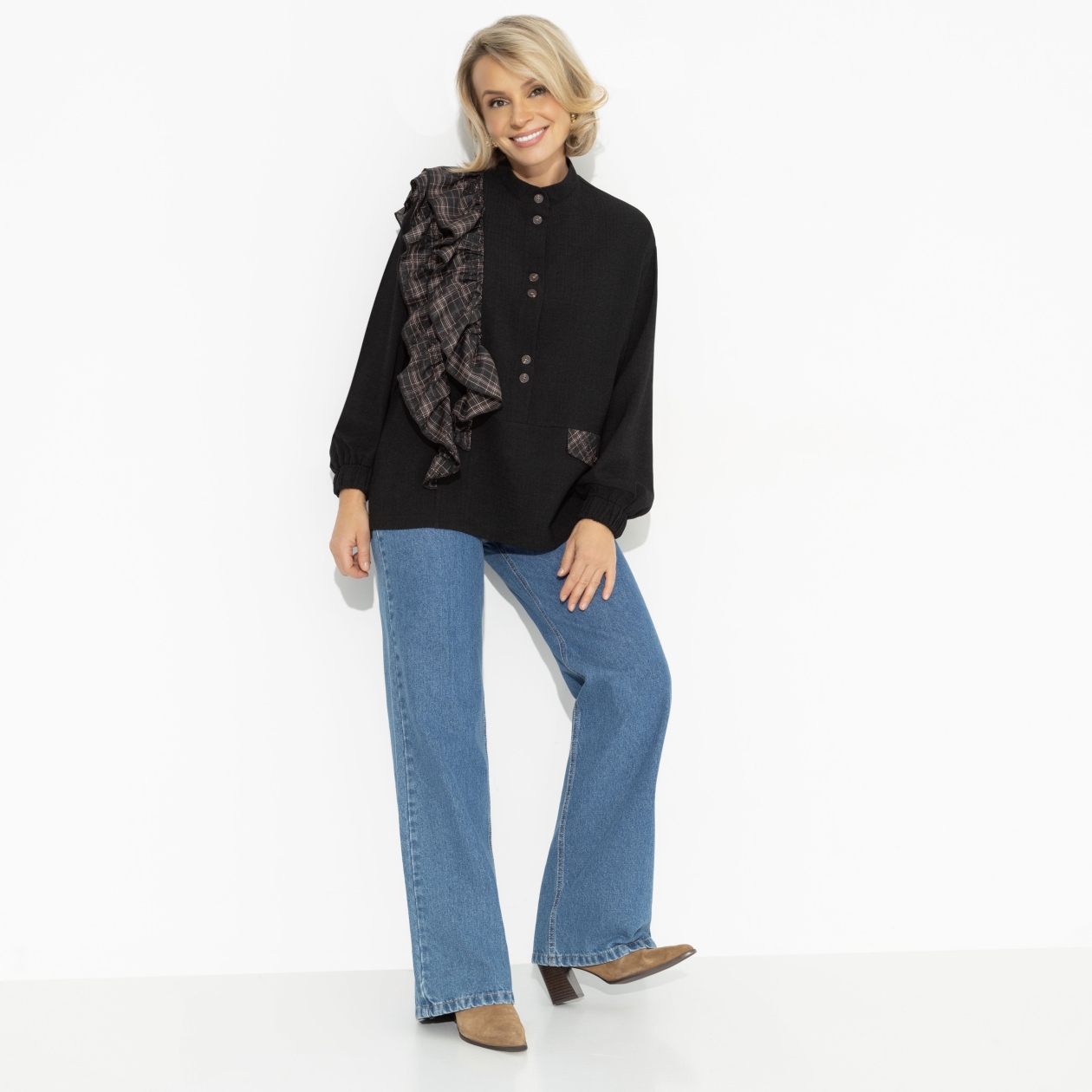 То, что твой город занял первое место в модном рейтинге, ты считаешь своим личным достижением. А как иначе могло быть, если рубашка CHARUTTI отвоевала почетное место в твоем гардеробе. Вещь, которая собирает комплименты в каждый твой выход. Рубашка свободного силуэта с ассиметричным декором. Объемные несъемные воланы с одной стороны изделия. Имитация кармана, застежка на пуговицы.
