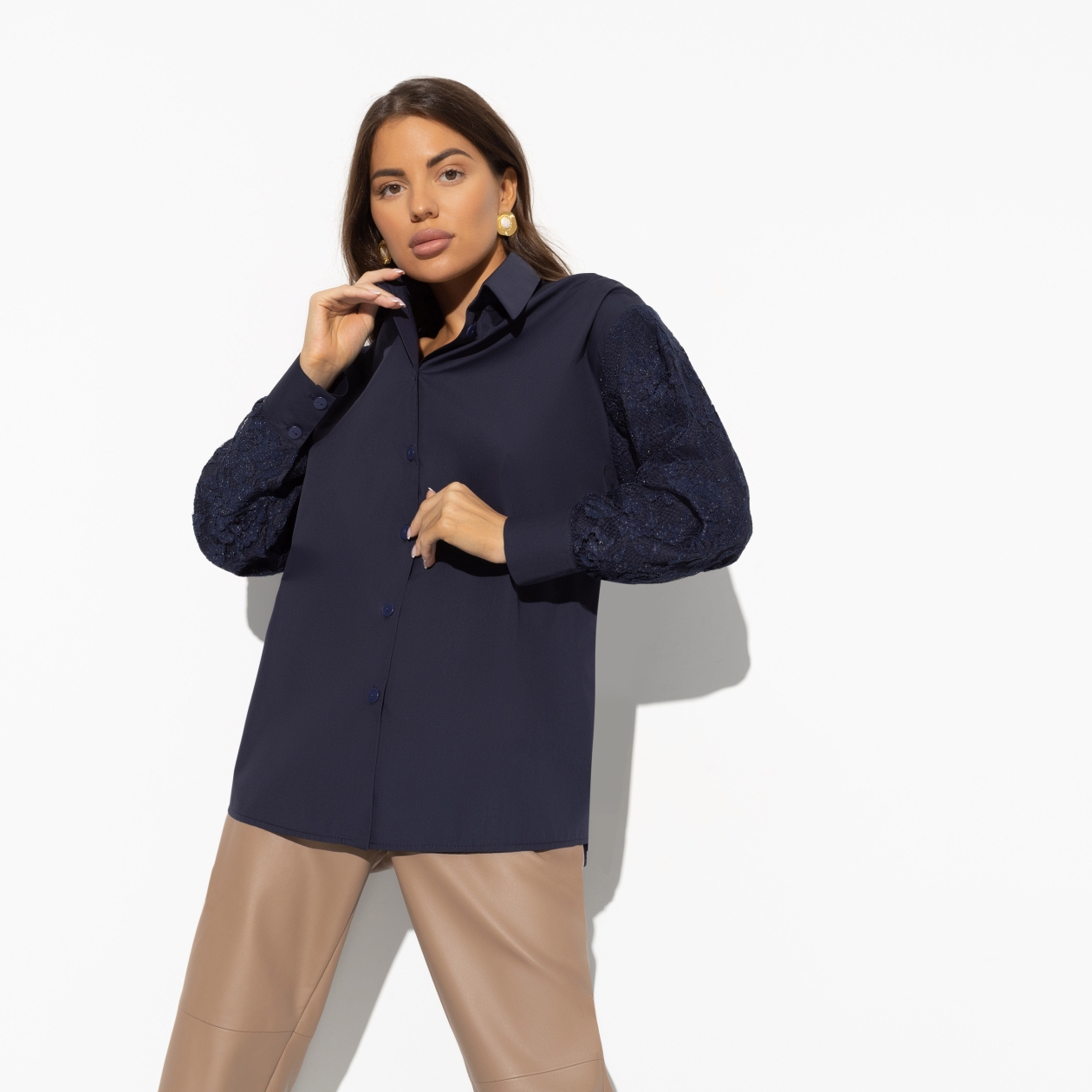 Ощутите магию изысканного стиля и элегантности с рубашкой «Шепот шика» — идеальным решением для тех, кто хочет приобрести одежду оптом. Изготовленная из поплина с кружевными вставками, эта рубашка свободного кроя станет настоящим сокровищем в вашем гардеробе. Если вы заботитесь о комфорте, обратите внимание на то, как тёмный цвет помогает справиться с жарой, скрывая тепло и оставляя его в стороне. Эта особенность делает рубашку бесконечно удобной даже в самые знойные дни, что важно при выборе одежды оптом. Ваша коллекция будет выглядеть привлекательно благодаря продуманным деталям и универсальному дизайну.