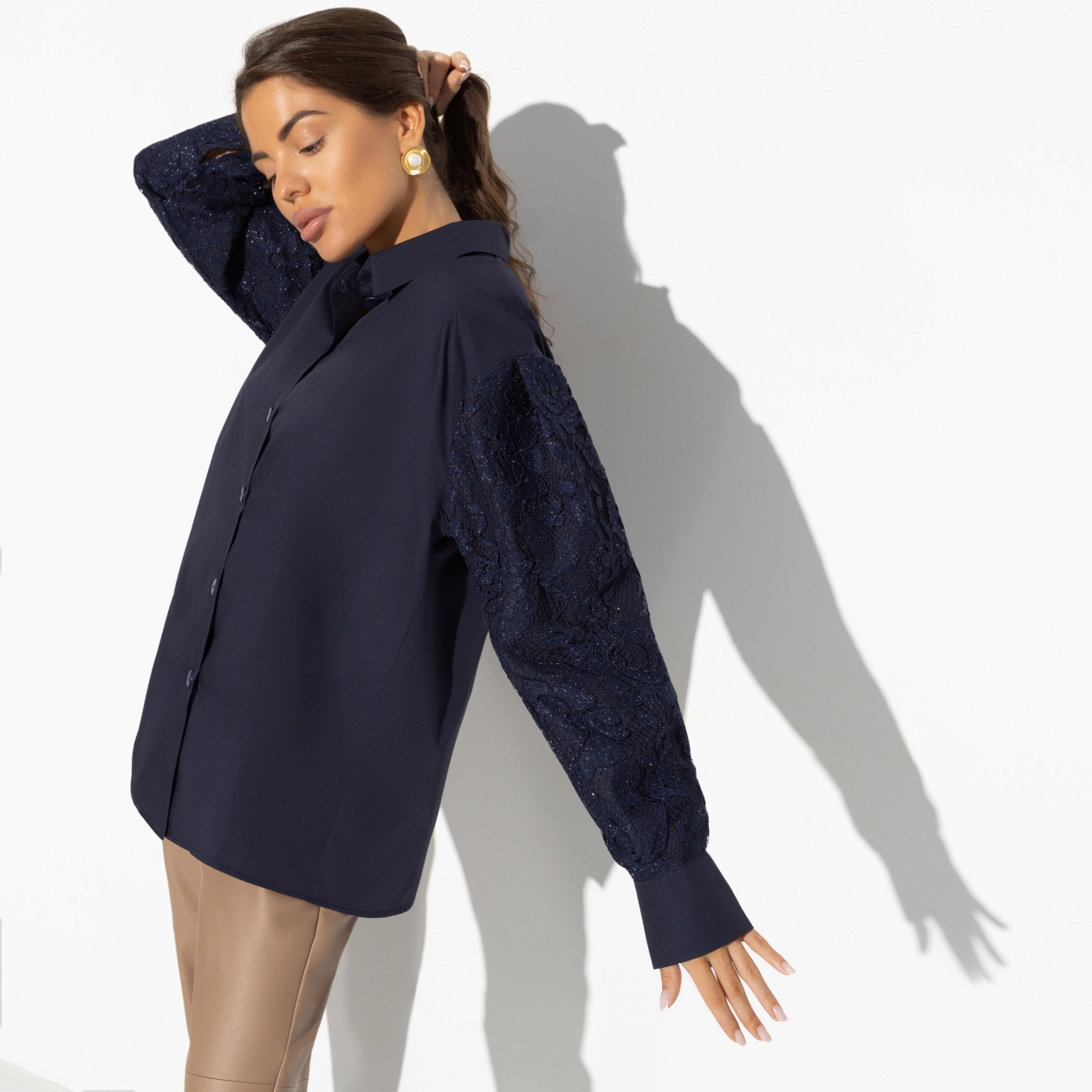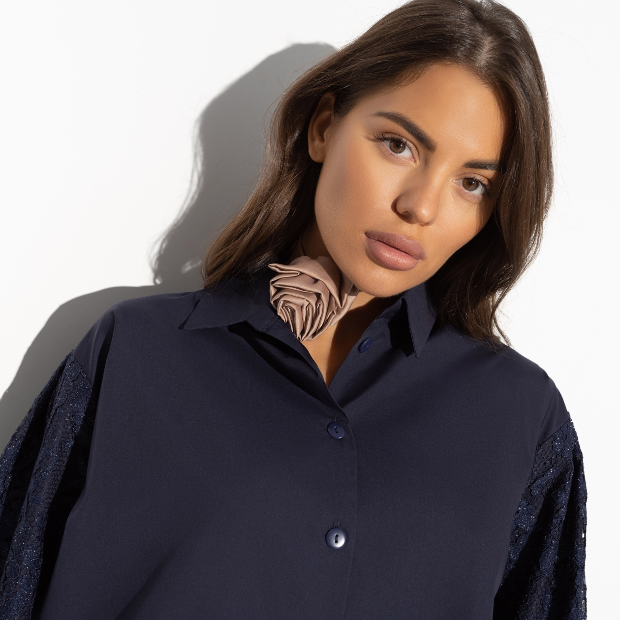 Превосходный крой и внимание к деталям превращают «Шепот шика» в настоящий шедевр. Спущенная линия рукава и утонченное кружево, контрастирующее с гладким поплином, создают впечатление легкости и гармонии. Эта рубашка подходит для всех типов фигур, а значит, она станет хитом продаж для ваших покупателей оптом. Простота и в то же время утонченность этого предмета одежды позволяют ему оставаться популярным выбором как для повседневных, так и для вечерних образов. Задавая тон моды, ваша коллекция оптом станет символом утонченного вкуса и практичности.