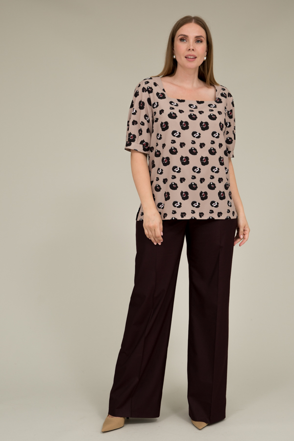 Блуза свободного силуэта из легкой блузочно-плательной ткани. Лиф с красивым вырезом каре, продублирован вторым слоем. Рукав втачной короткий с защипами по низу рукава и манжетой. В таблице размеров представлены параметры человека, а не изделия.