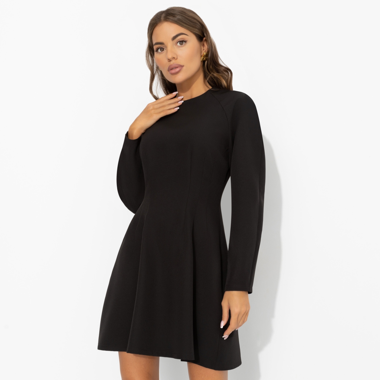 Чёрное мини, острое как шпилька на красной дорожке: провокация и элегантность в одном силуэте. Коктейль дерзости и романтики. Попробуй сама. Платье в длине мини приталенного силуэта. Рукава длинные, О-образного силуэта. Застёжка на скрытую молнию по спинке изделия.