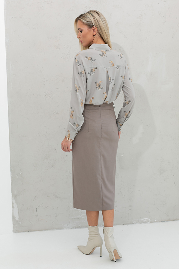 Юбка прилегающего силуэта из костюмной ткани. По центру передней части изделия выполнен шов, снизу шлица. Сзади по среднему шву застёжка-молния. Пояс притачной со шлёвками. Карманы с подкройным бочком.