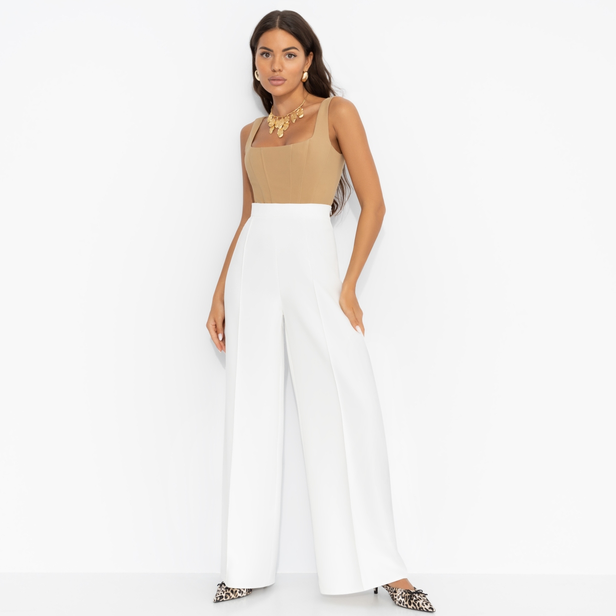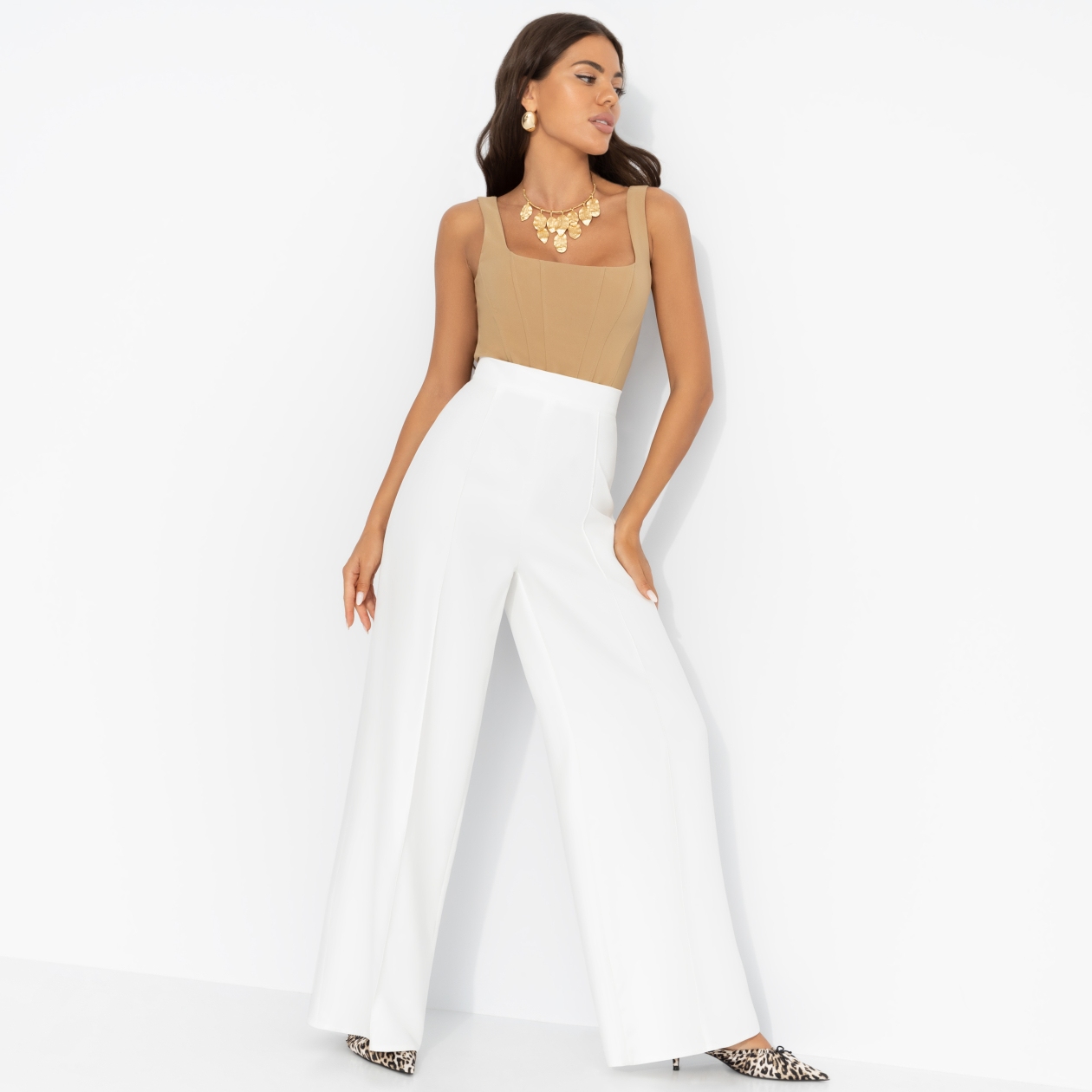 Цвет, как секретное оружие. Белый – символ чистоты помыслов и аккуратности, как стиля жизни. Брюки ЧАРУТТИ представят вас так, как нужно. Высокая посадка зрительно удлиняет ноги, что делает вас буквально недостижимой для недостойных. Брюки с высокой посадкой на поясе. Стрелки прошиты. Брюки застегиваются на скрытую молнию сбоку. Ткань слегка просвечиывает.