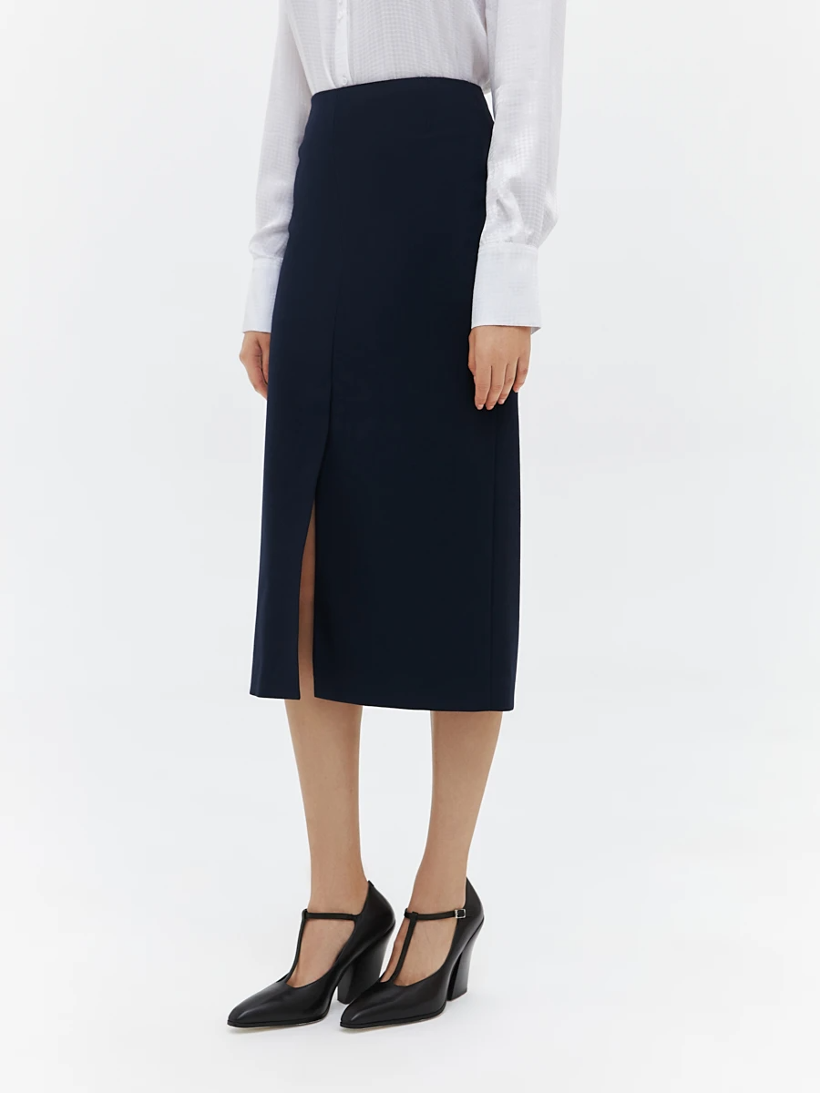 Ст.цена 1790р Юбка-карандаш с разрезом Темно-синий 30.013.9149.025.1