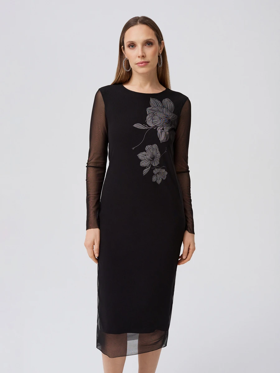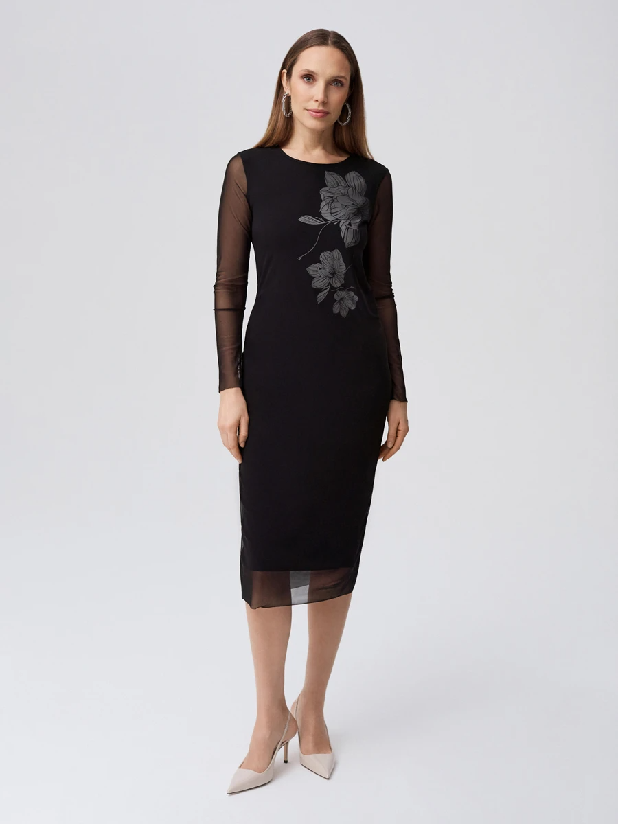 Ст.цена 1790р Платье миди с принтом Черный 64.039.6826.001.1