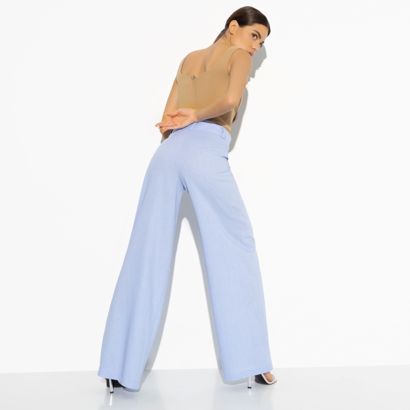 Брюки председателя женского модного сообщества. В модели в небесно-голубого цвета вы обретаете сверхполномечия. Например, определять на глаз отсутствие калорий в десерте, если вас им угостили.