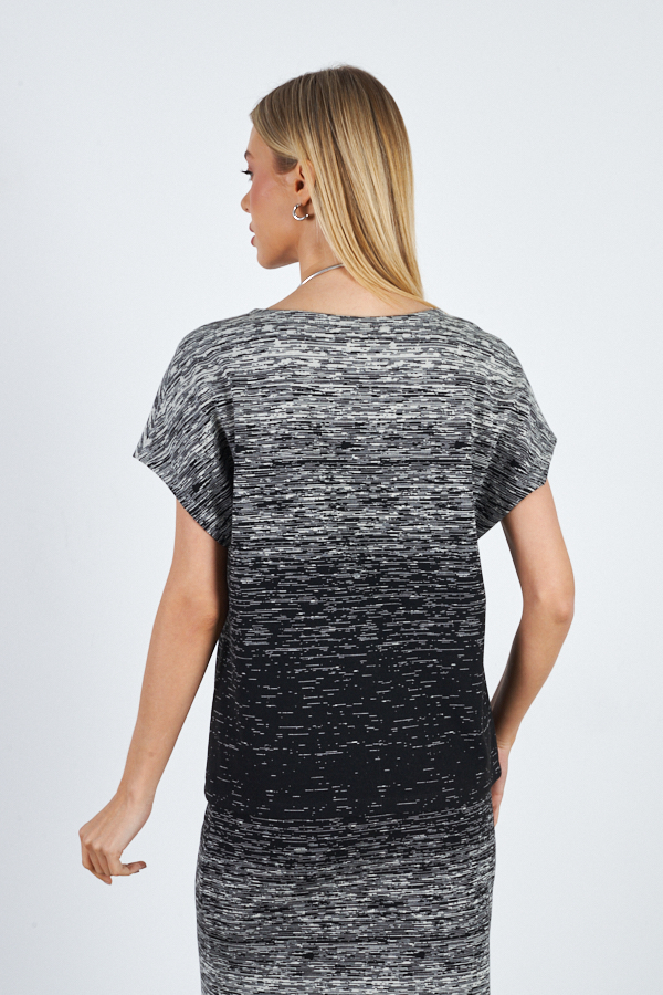 Джемпер свободного силуэта из эластичного полотна. Цельнокроеный короткий рукав. Круглый вырез горловины.