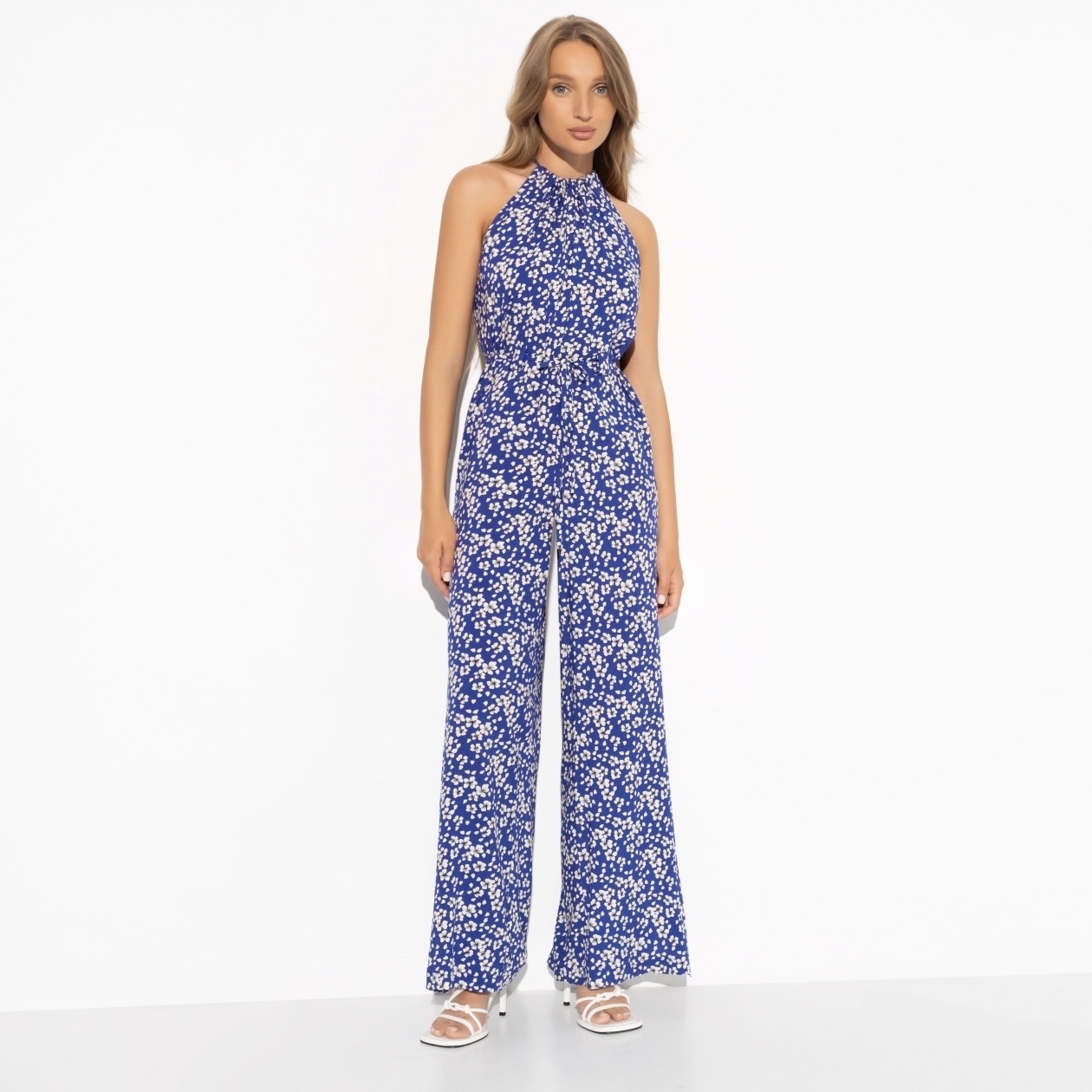 Принт с мелкими белыми цветами придаёт комбинезону лёгкость и романтичность, делая его идеальным выбором для летних прогулок, вечерних мероприятий и даже путешествий. Этот комбинезон станет незаменимым элементом гардероба ваших клиентов, предлагая им комфорт и стиль в одном изделии.