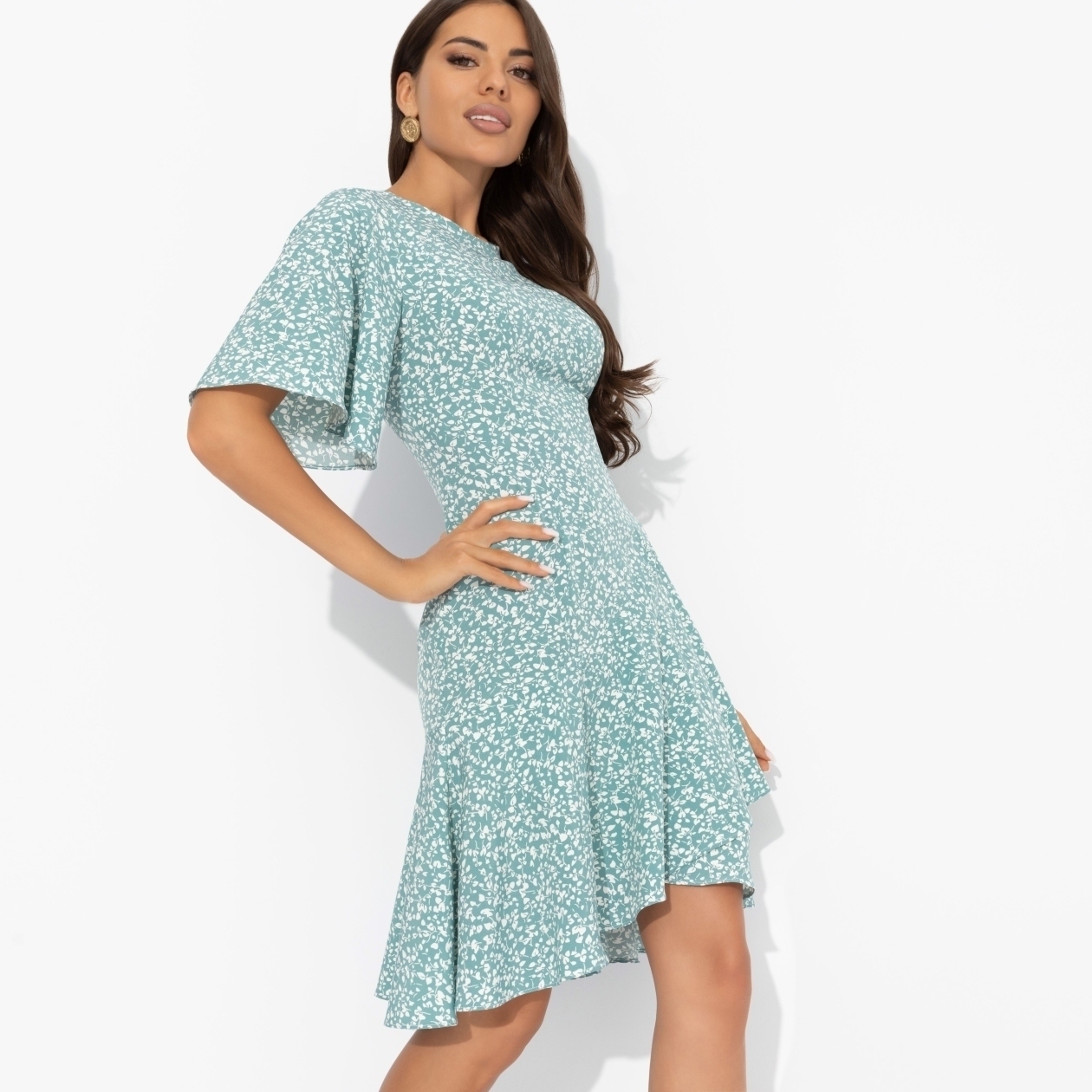 Я никому не скажу, что влюбилась, но будут знаки. Мини-платье с рюшами от CHARUTTI в свежем ментоловом оттенке, как отражение моего состояния – мне легко и радостно. Кружиться от счастья с CHARUTTI. Платье приталенного силуэта в длине мини. Расклешенные рукава. Подол в виде рюш. Изделие застегивается на скрытую молнию по спинке.