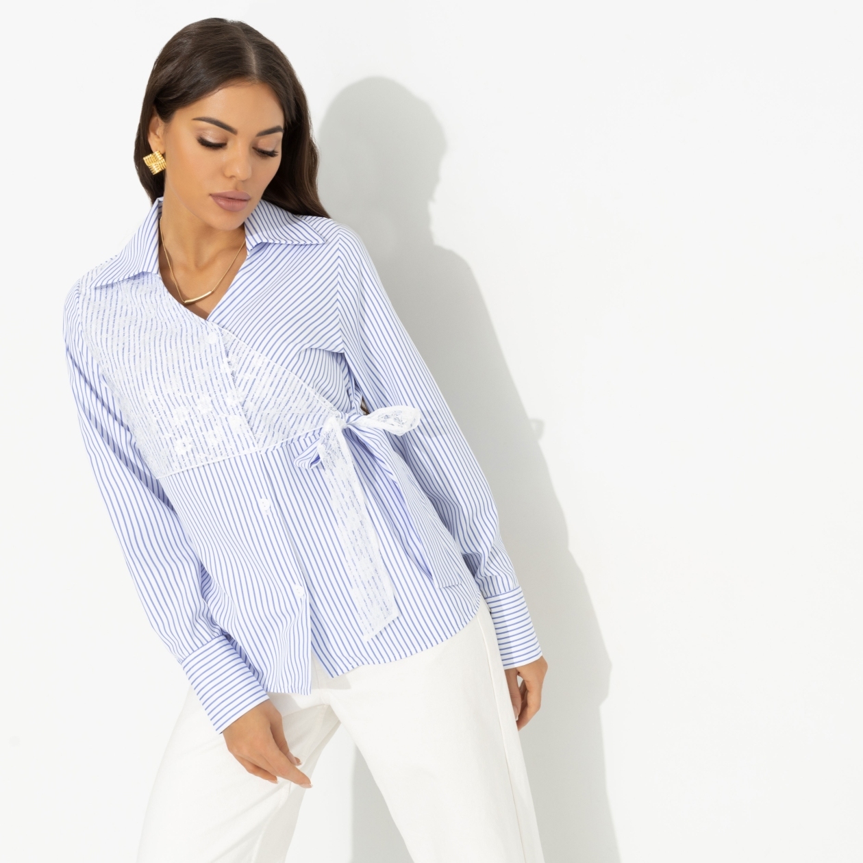 Быть заряженной на креативный лад значит с самого утра выстроить творческую стратегию. Матча-латте вместо привычного кофе, растяжка под классическую музыку вместо рутинных приседаний и рубашка с кружевом от CHARUTTI вместо базовой белой. Рубашка прямого силуэта. Дополнена акцентным вшитым кружевом на передней стороне изделия. Изделие застегивается на пуговицы. Хорошо смотрится в заправленном виде.