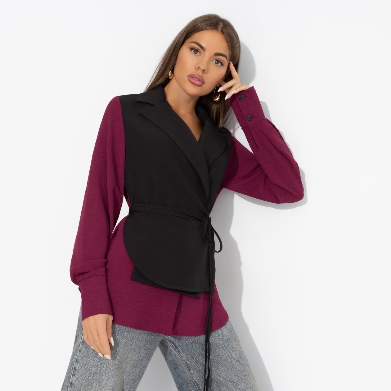 В этом сложном крое с игрой линий читается вся её история: от маминых уроков стиля до собственного фирменного почерка с ЧАРУТТИ. Рубашка ЧАРУТТИ как метафора её пути: здесь и уважение к традициям, и смелость переосмыслить правила. Это уверенная заявка на звание иконы стиля нового поколения. Рубашка в стиле многослойности. Имитация многослойности: сочетания рубашки и жилета с передней стороны изделия. Жилет на тонких завязках с лацканами. Рубашка на пуговицах.