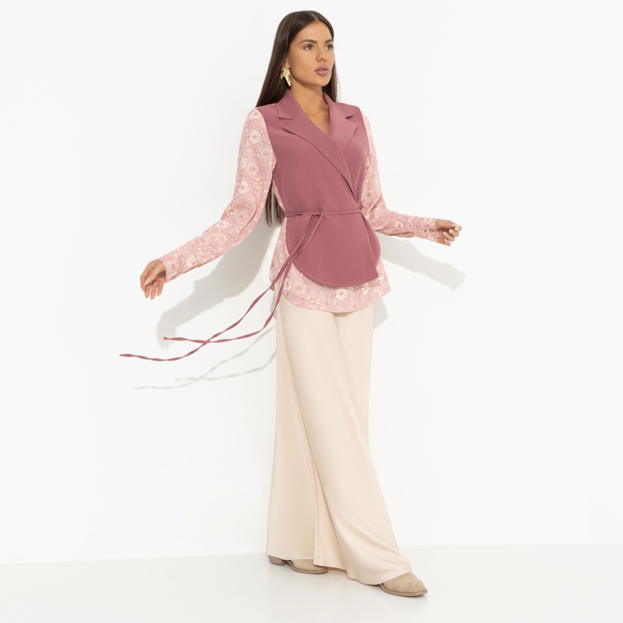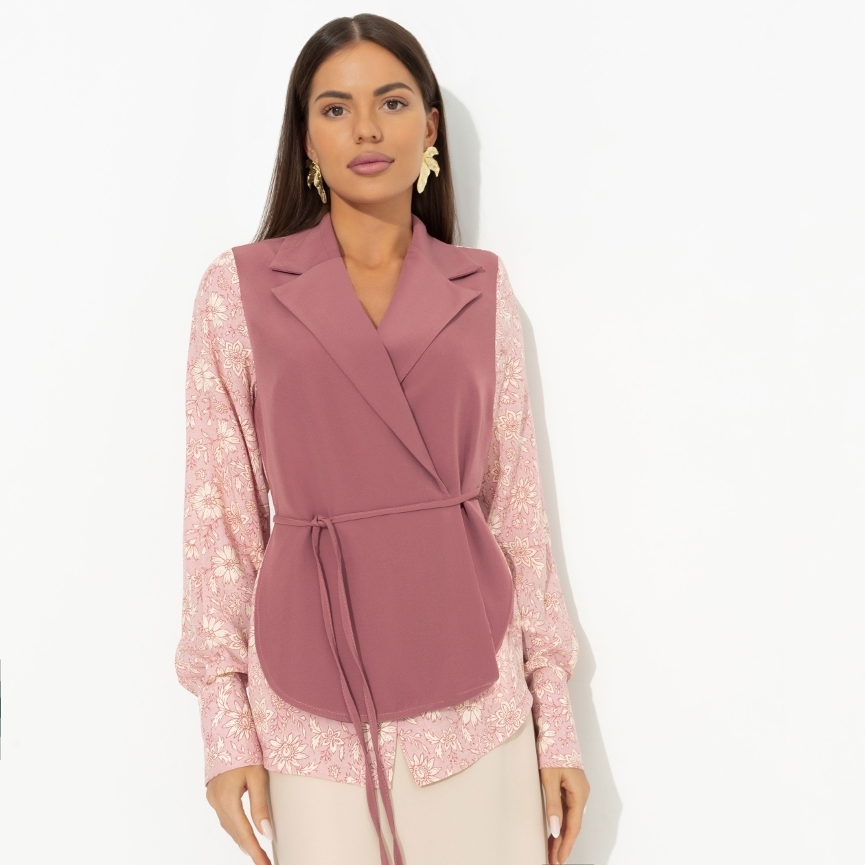 Все началось с записи на первой странице ежедневника: «Хочу быть боссом!». Потом закрутилось – дело мечты, много работы, литры кофе и сотни страниц подписанных документов. И теперь ты в рубашке CHARUTTI сидишь в кабинете своей мечты. Рубашка с лацканами. Имитация двух разных изделий, нижний слой на пуговицах, верхний - на запах. Регулируется тонким поясом.