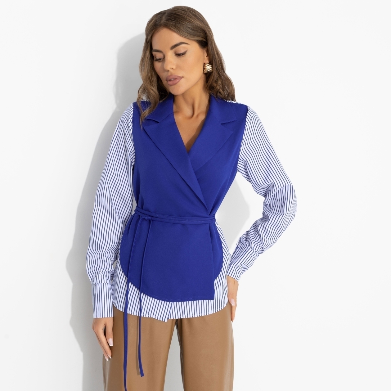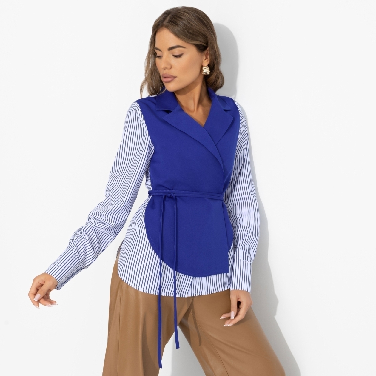 Элегантный дуэт – это ты и мужчина твоей мечты. А еще элегантный дуэт – это рубашка и жилет. Иллюзия многослойности и честность стиля от ЧАРУТТИ. Сочетайте рубашку с лаконичными брюками, приталенный юбкой или джинсами. Рубашка в стиле многослойности. Имитация многослойности: сочетания рубашки и жилета с передней стороны изделия. Жилет на тонких завязках с лацканами. Рубашка на пуговицах.