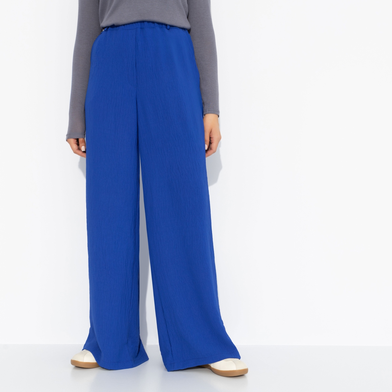 Тем временем вы уже готовы. Хоть ресторан, в филармонию, в кино, на прогулку. Честно говоря, в брюках ЧАРУТТИ можно даже в космос, настолько они хороши. Есть желающие отправиться к звездам?! Брюки широкие. Посадка высокая, на талии. Пояс на скрытой широкой резинке. Есть карманы. Материал изделия жатый. Цвет - фантастика!