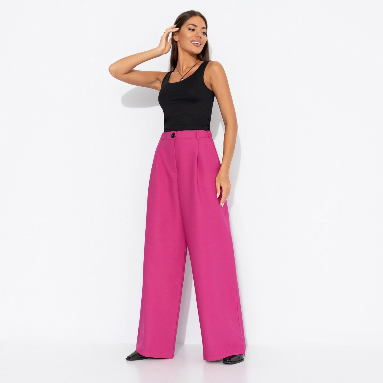 Брюки ЧАРУТТИ воздушные, как летний ветер, и яркие, как закат над городом. Вещь, которая окрашивает будни в оттенки счастья. Стремительно покидая офис, в них можно отправиться на встречу с подругами, в кино или на свидание. Цвет пионов будто бы сообщает: вечер будет волшебным. Брюки широкие. Посадка высокая на талии. Есть декоративные защипы. Изделие с карманами. Часть пояса со скрытой широкой резинкой. Брюки хорошо смотрятся на любом типе фигуры.