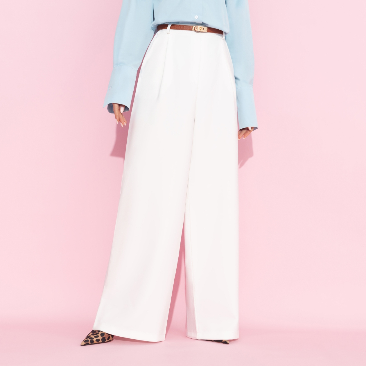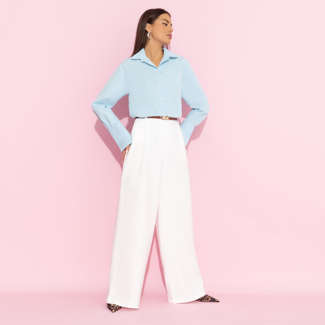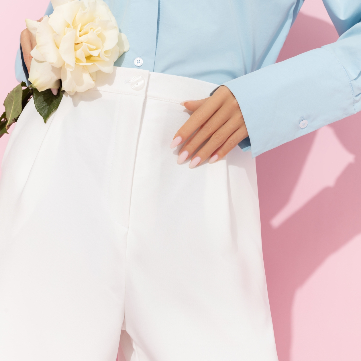 Моника Беллуччи говорила, что женственность – это не биологический параметр, это отражение вашей жизни и опыта. Белые брюки CHARUTTI покажут, что ваша жизнь олицетворение чистоты, элегантности и аккуратности. Брюки в стиле палаццо – прямые и широкие. Посадка высокая, на талии. Брюки застегиваются на пуговицу и молнию. Есть шлевки для ремня. Изделие с карманами.