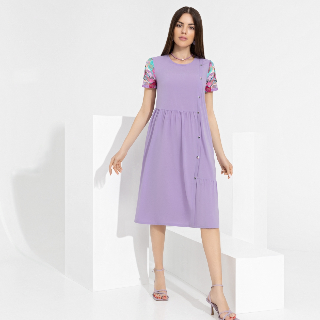Скажи скучным образам «Пока» – и переодевайся в оригинальное платье! Игривая асимметрия – небанально. Больше цвета для яркой тебя.Чувства на максимум!