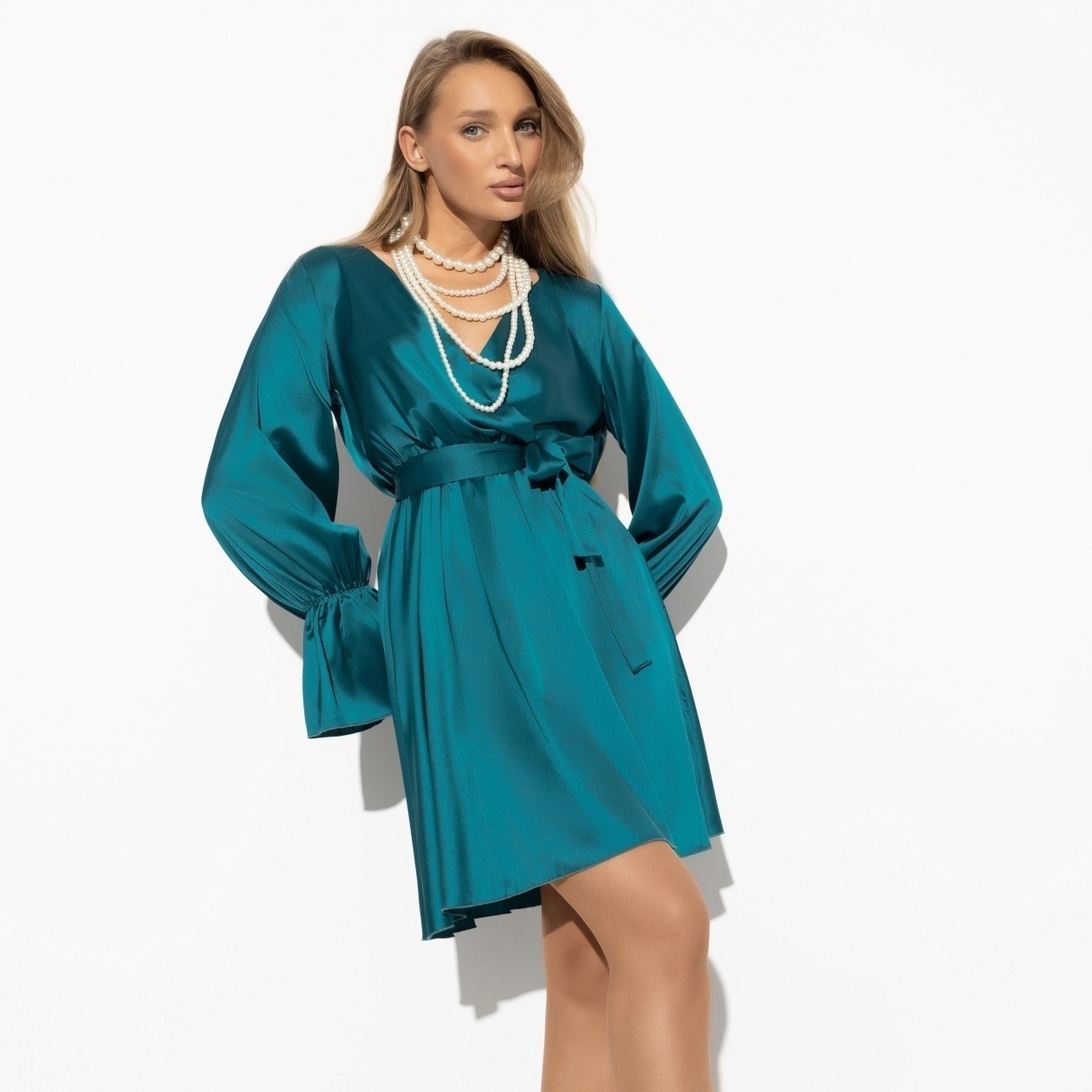 Остается лишь один вопрос – кому достанется платье в длине мини от CHARUTTI. Да начнутся голодные игры! Счастливиц будет не много. Не все окажутся смелыми и экстраординарными личностями. Но как же повезет той, кто наденет невесомую роскошь в цвете Тиффани. Платье в длине мини. Глубокий вырез декольте. Изделие с вшитой резинкой в зоне талии. Есть пояс в комплекте в тон изделия. Открыта часть спинки за счет приспущенной линии плеч. Есть завязки сзади.