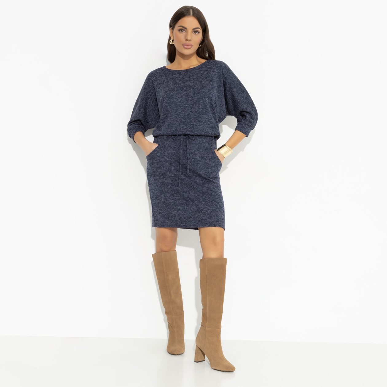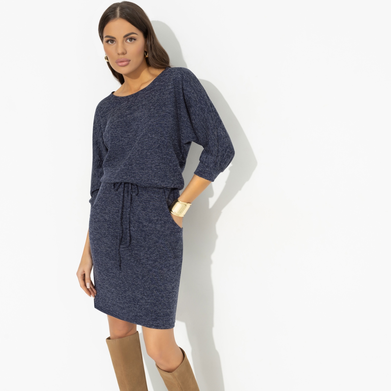Сочетание юбки и джемпера в одном изделии делает платье не только стильным, но и универсальным. Спущенная линия плеча и завязки на талии добавляют ему игривости и легкости. Платье женское трикотажное подходит для любого сезона, но особенно приятно носить его в прохладные осенние вечера. Карманы — это не просто удобная деталь, но и стильный акцент, который превращает это платье женское в нечто большее. Вы можете носить его как платье женское осеннее или как теплое платье женское зимой, дополнив образ стильными аксессуарами. Покупка оптом позволит вам иметь всегда под рукой идеальный наряд для любого случая.