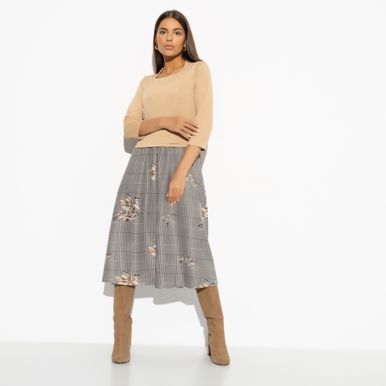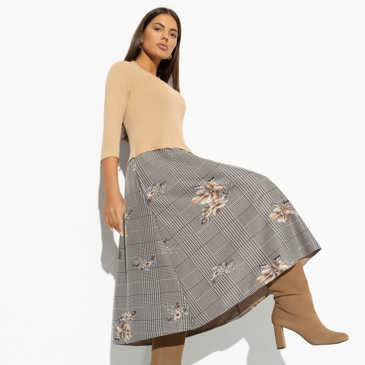 Для тех, кто ценит удобство и функциональность, платье приталенного силуэта станет настоящей находкой. Благородный расклешенный крой юбки идеально комбинируется с четко выделенной линией талии, придавая фигуре утонченную форму. А удобные карманы добавляют платью практичности, оставаясь незаметными для окружающих. Оптовая покупка этой модели — рациональное решение для вашего бизнеса, ведь она точно станет фаворитом среди клиентов, которые ценят сочетание красоты и комфорта. Более того, имитация комбинации юбки и кофты создает неповторимый эффект, впечатляющий своей оригинальностью.