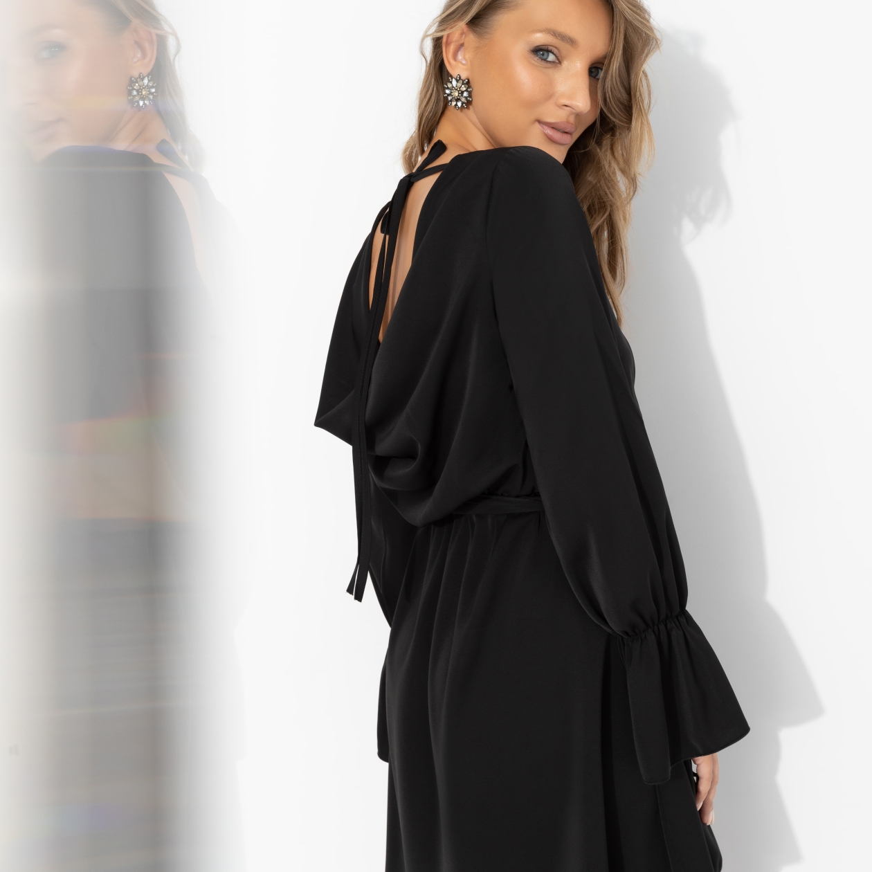 Премьера – платье, в котором комфорт и привлекательность больше не спорят, а усиливают друг друга. Как у Марго Робби на красной дорожке: свободно двигаешься, при этом выглядишь на миллион. Мини-платье с имитацией запаха и акцентом на талии. Универсальный чёрный – на свидание или долгожданную вечеринку!