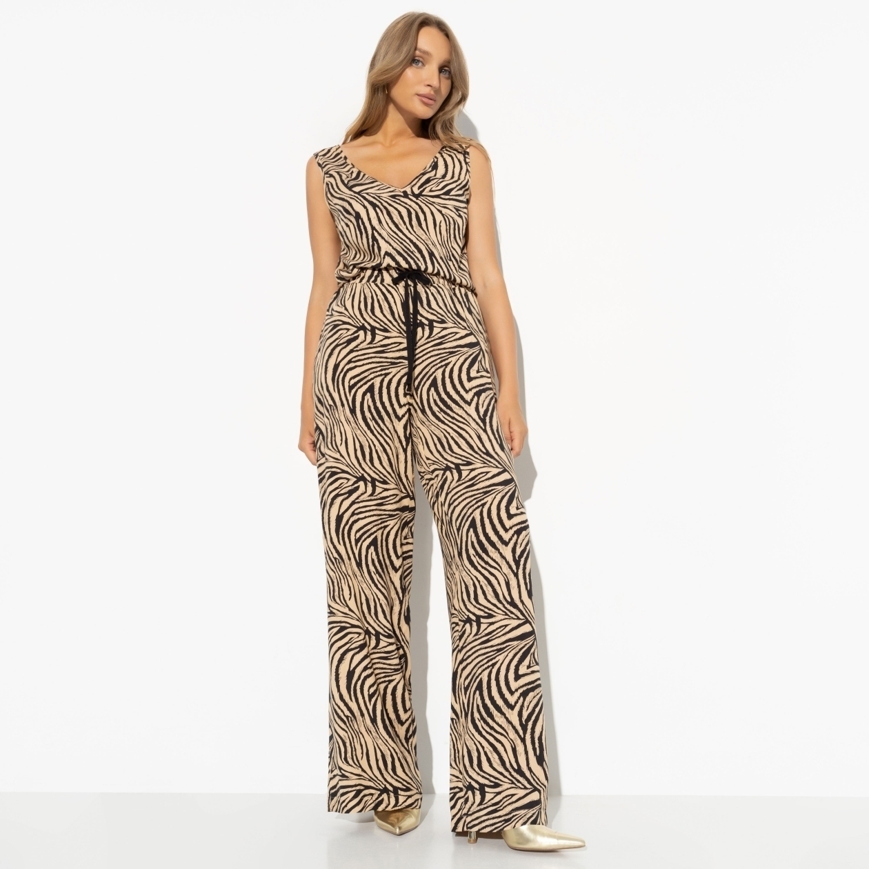 «С тобой хоть на край света!» – сказал он. А ты и рада. Комплект в стиле сафари полностью отражает твою суть. Ты уверена в себе, грациозна и иногда опасна. Так что можно и на край света. В составе комплекта топ без рукавов и брюки свободного кроя. Состав ткани – 100% вискоза. Топ классического фасона, длина до линии бедра. Брюки свободные на завязках, длина для среднего роста.