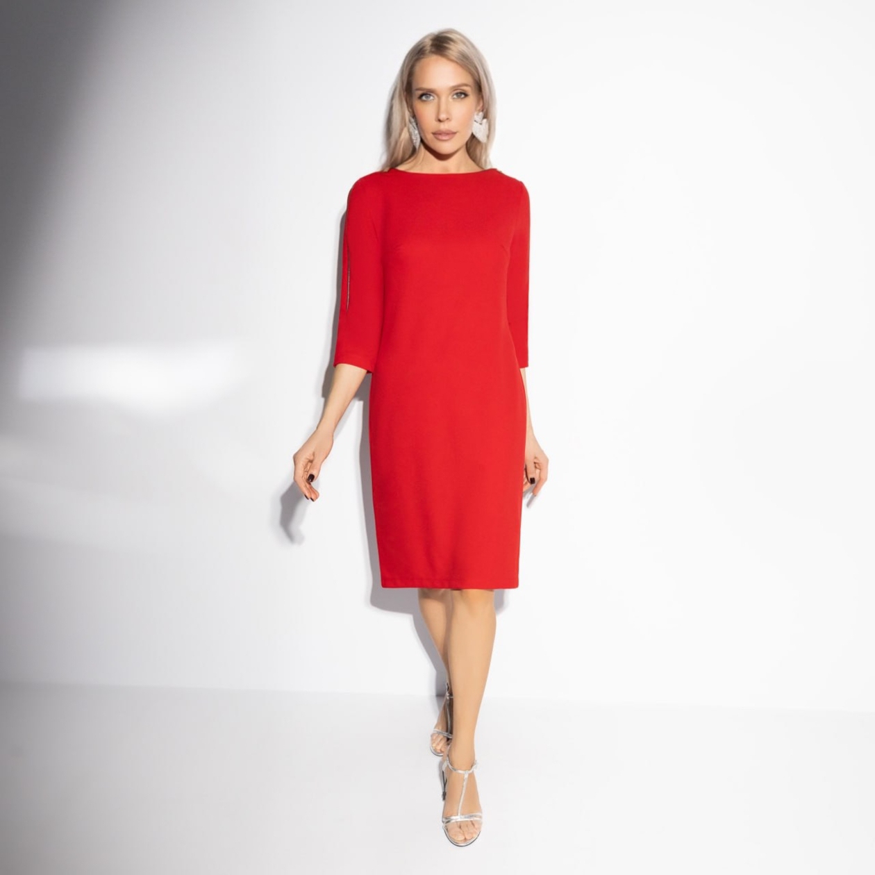 Красное платье, которое работает как магнит. Оно оживляет кожу, усиливает взгляд, настраивает на волну притяжения. Универсальный выразительный силуэт платья украсит обладательницу любой фигуры. В нём вы будто светитесь изнутри, притягивая любовь взглядом, движением, дыханием. В нём вы не ищете любовь ‒ любовь сама ищет вас. Платье прямого силуэта с акцентными рукавами. Рукав с декоративной молнией, чуть заужен.