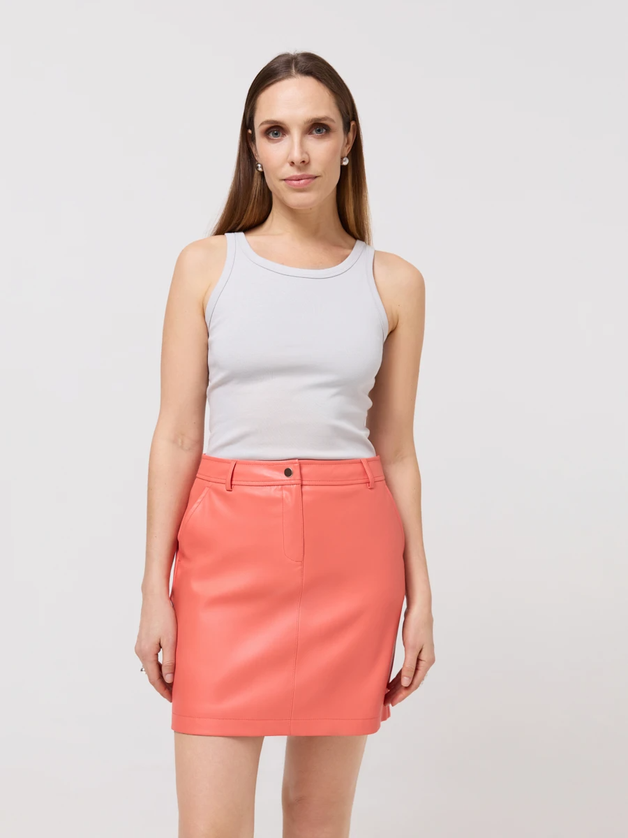 Ст.цена 1990р Юбка мини из экокожи Коралловый 30.015.1117.062.1