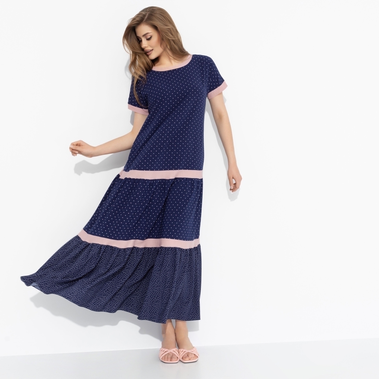 Весна в сердце – состояние, которое не зависит от времени года. Открытая душа, летящее платье от CHARUTTI в миниатюрный горох и общее ощущение гармонии в жизни. Такой вайб. Платье трапециевидного силуэта в длине макси. Комбинация нескольких видов материала. Есть карманы. Хорошо смотрится на любом типе фигуры. Ткань невероятно приятная к телу.