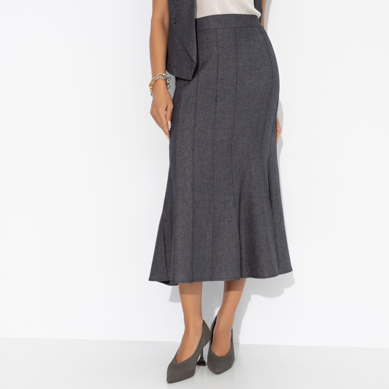 Новая юбка для новой жизни. Выверенный силуэт, плавность линий и оттенок ткани юбки ЧАРУТТИ словно говорит: «Я больше не бегу. Я красиво дефилирую вперед!». Лёгкая расклешённость подола напоминает – даже резкие повороты могут быть элегантными. Теперь каждый взгляд в зеркало – комплимент самой себе. Юбка в длине миди приталенного силуэта. Посадка высокая на талии. Декоративные строчки по полотну изделия вытягивают силуэт. Юбка подчеркивает женственность форм. Застегивается на скрытую молнию сбоку.