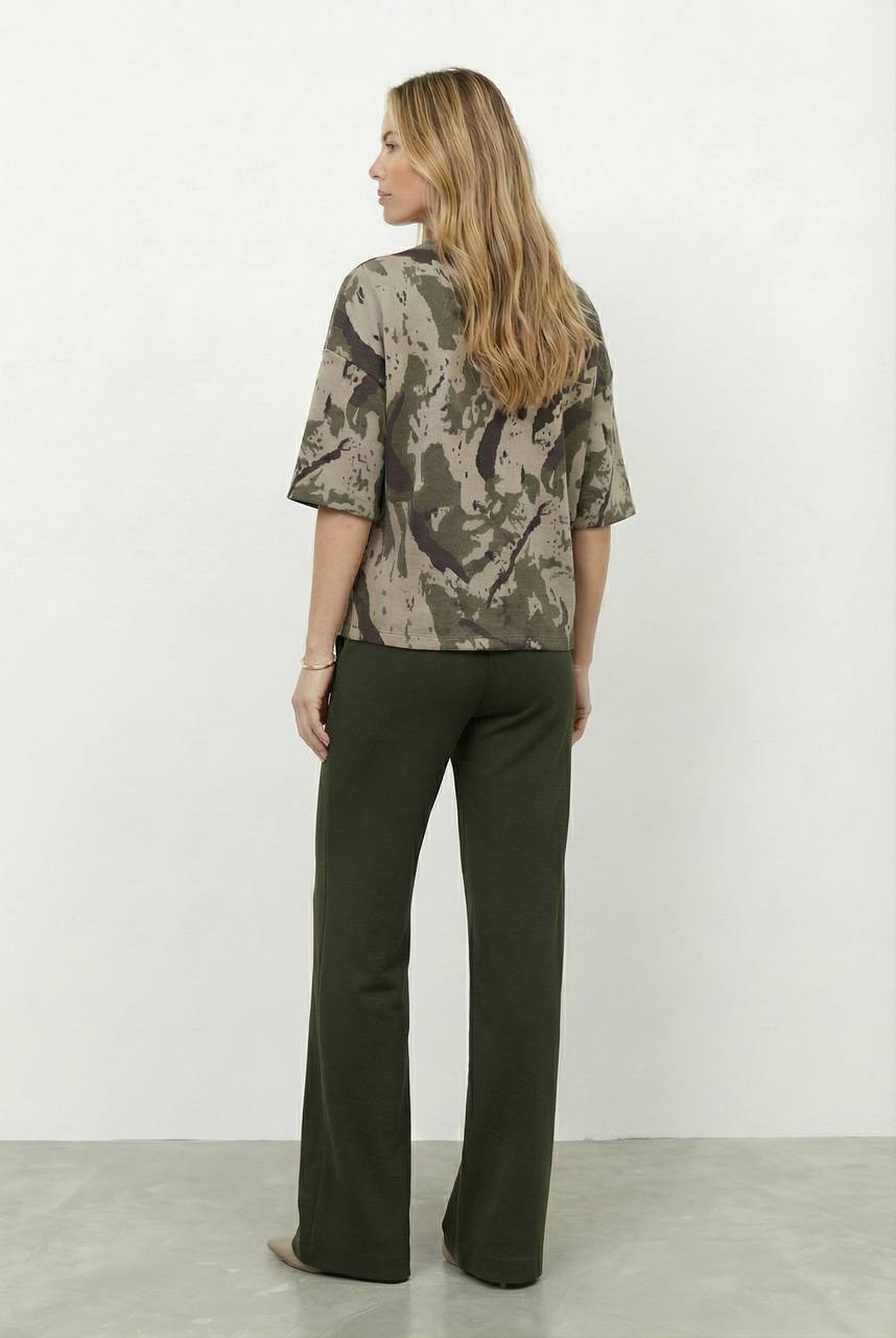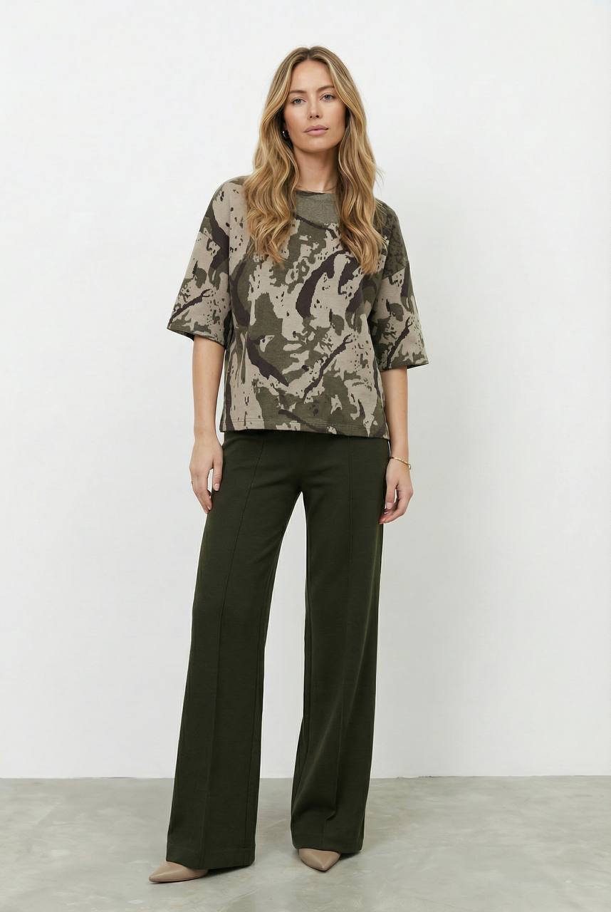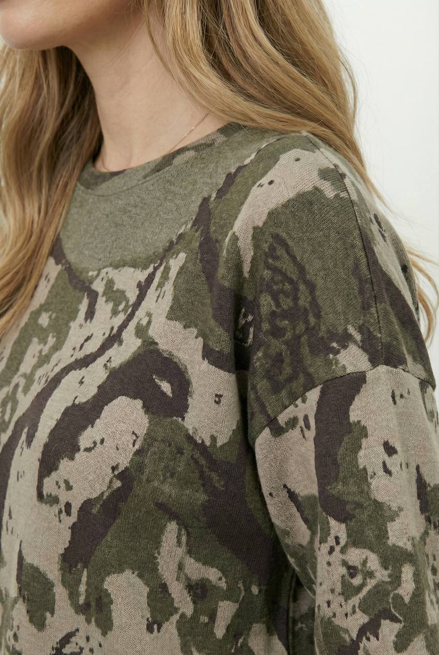 Джемпер свободного силуэта со спущенной линией плеча и рукавом до локтя выполнен из мягкого эластичного полотна. Вырез горловины оформлен бейкой из основной ткани. В таблице размеров представлены параметры человека, а не изделия.