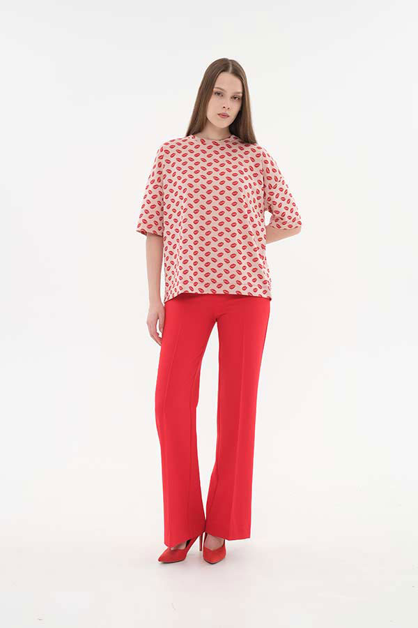 Джемпер свободного силуэта со спущенной линией плеча и рукавом до локтя выполнен из мягкого эластичного полотна. Вырез горловины оформлен бейкой из основной ткани. В таблице размеров представлены параметры человека, а не изделия.