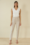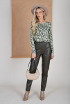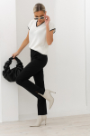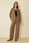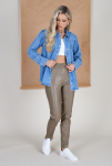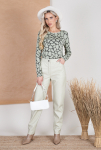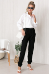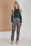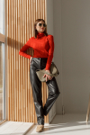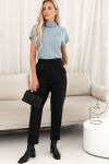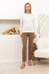 Брюки из меланжевой костюмной ткани, зауженные книзу с отворотами. В боковых швах выполнены карманы. На правом бедре накладной карман с клапаном. Притачной пояс со шлёвками. Застёжка на молнию-гульфик и пуговицу. Секрет такой модели кроется в безупречно точной посадке по талии и бедрам – ничего лишнего, только конструктивные детали, которые придают четкость линиям силуэта.