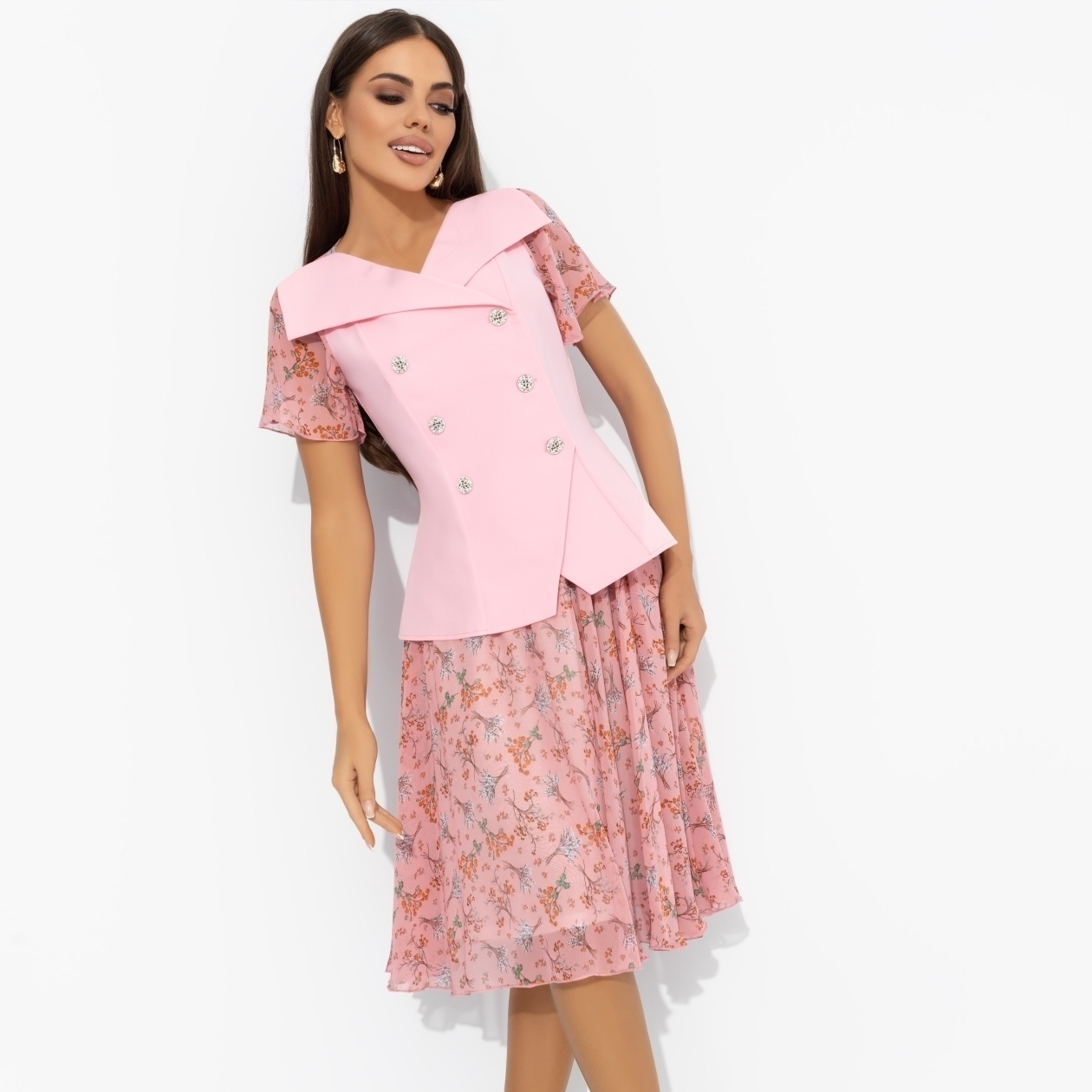 Состав: Костюмная ткань «габардин», «шифон», «трикотажный подклад» (98% п/э, 2% спандекс)