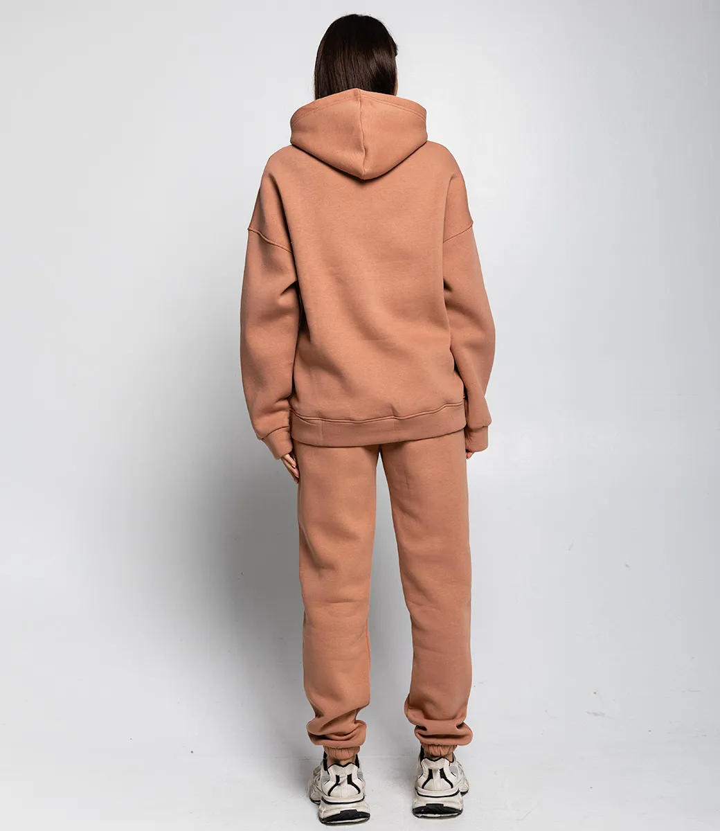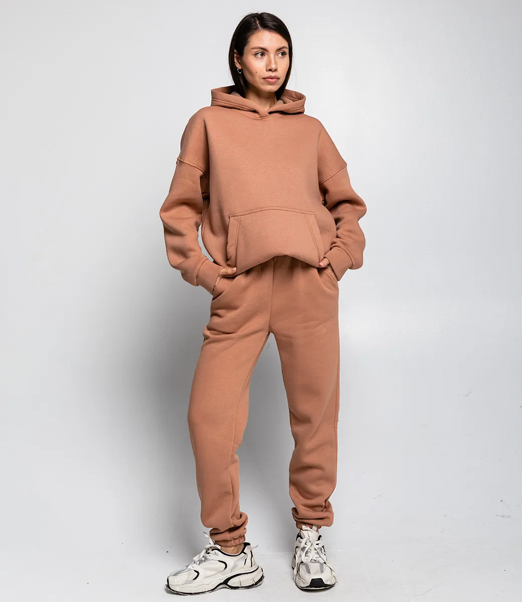 Теплый костюм на флисе с капюшоном и карманом "кенгуру" - это про стиль и комфорт. Теплая ткань и свободный покрой подходит для повседневной носки и любительницам спорта. Рост модели: 164, параметры: 83-61-89.