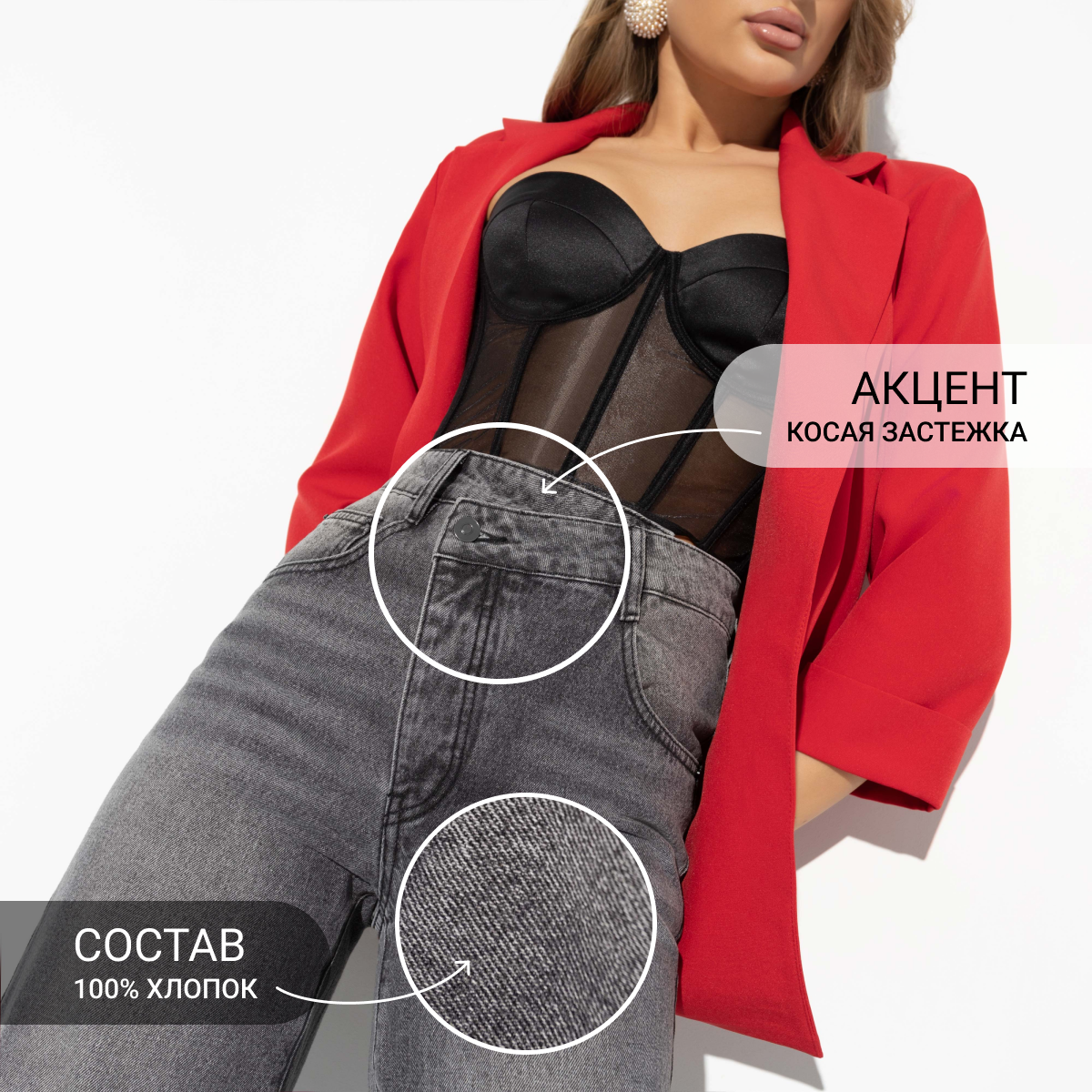 Каждая деталь этих джинсов отражает богатое наследие моды. Ассиметричная застежка — это не просто тренд, это ода истории и стилю. Позвольте себе быть частью этой истории, добавляя в свой гардероб этот модный акцент. Давайте вместе создадим неповторимый образ, который будет говорить о вашем безупречном вкусе и знании моды.