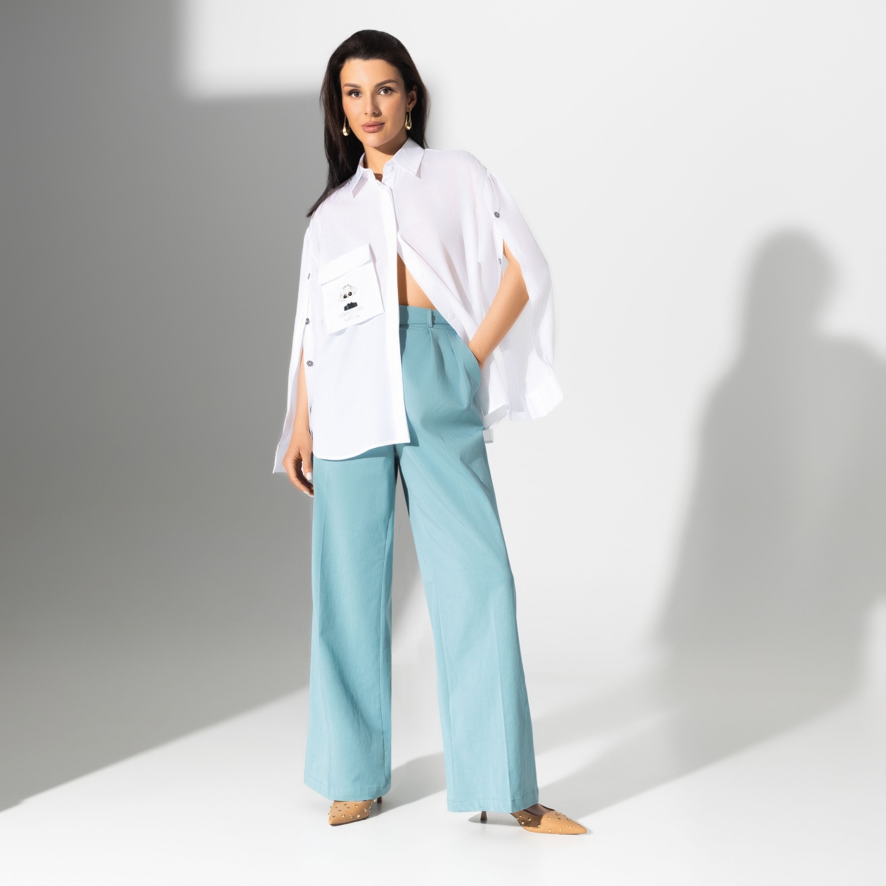 Белая рубашка больше, чем предмет делового гардероба. Настоящая модная жемчужина – трендовые рукава с пуговицами для WOW-эффекта и, конечно, восхитительная ткань и качественный пошив.