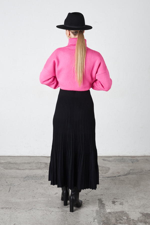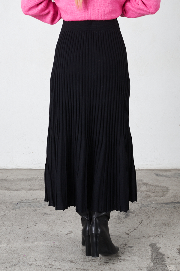 Юбка плиссе, расширенная книзу с поясом. Изделие выполнено из мягкой структурированной пряжи.